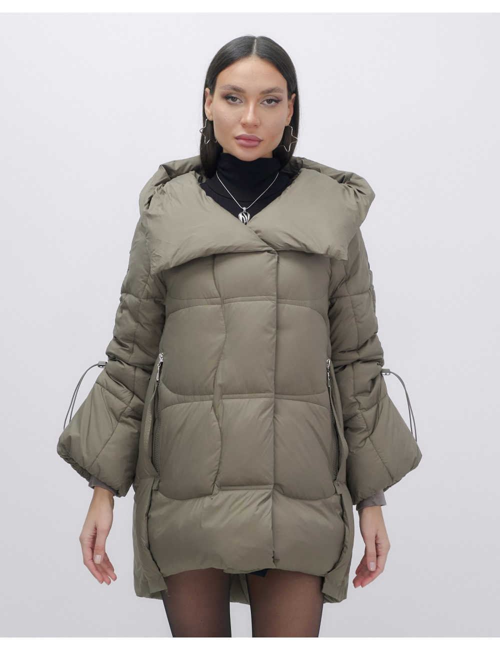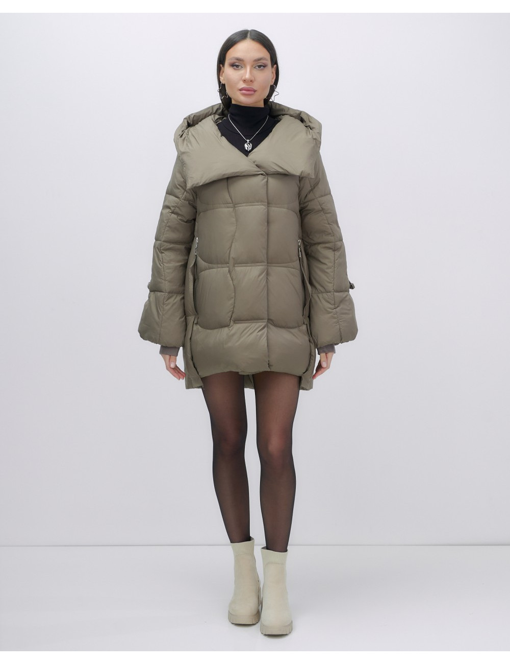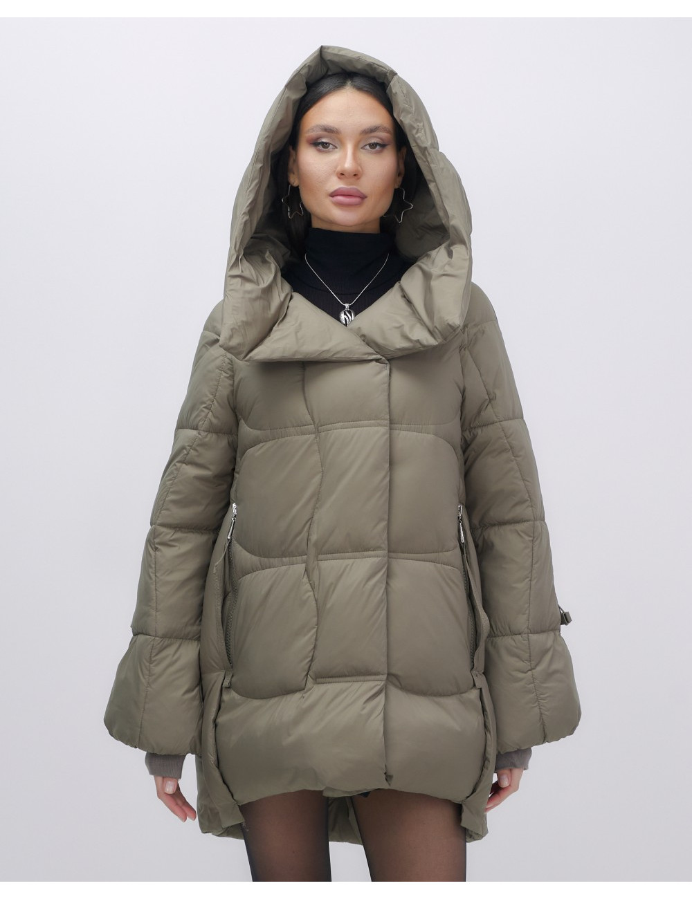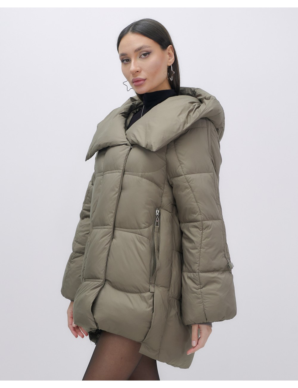 Капюшон и молния придают пуховику стильный вид.