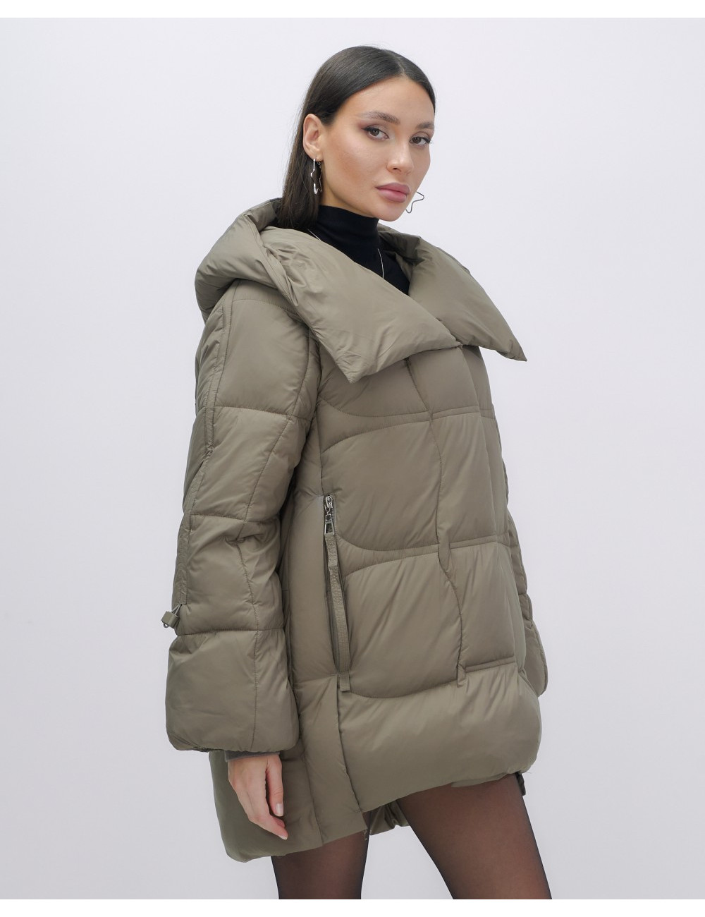 Сочетайте пуховик с джинсами, брюками или юбками для создания стильного и комфортного образа. Доставка по Москве и Московской области Женский модный пуховик с большим капюшоном, коричневый.