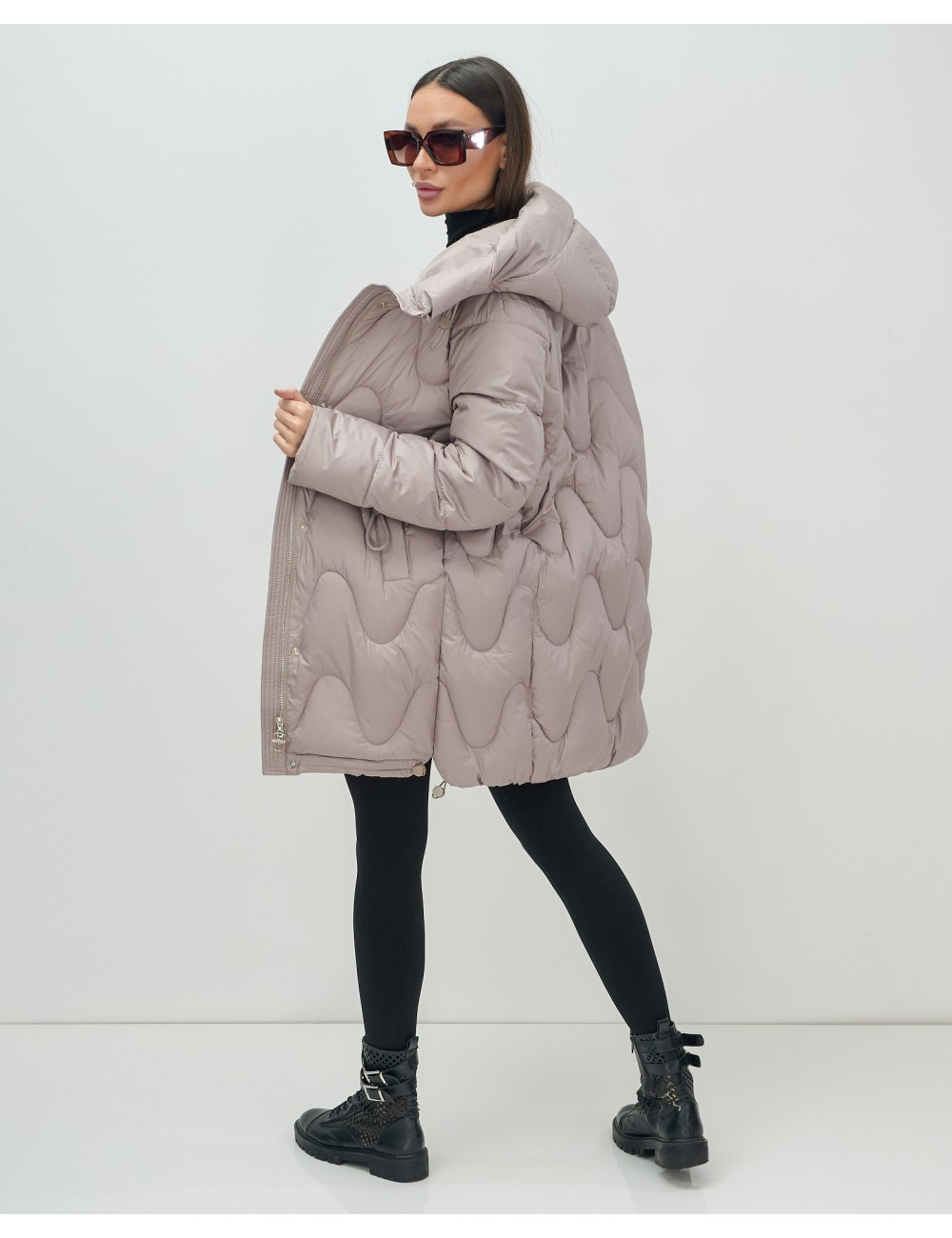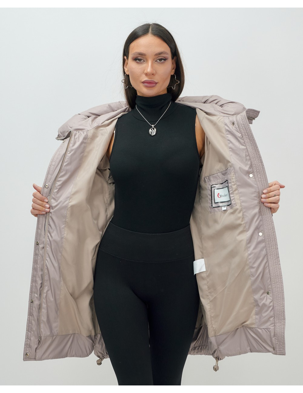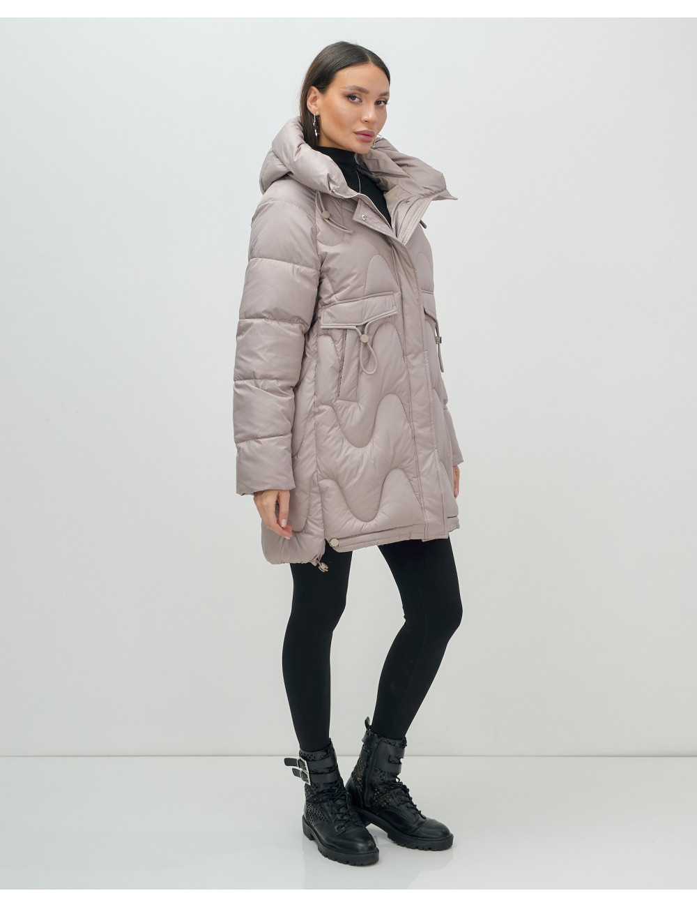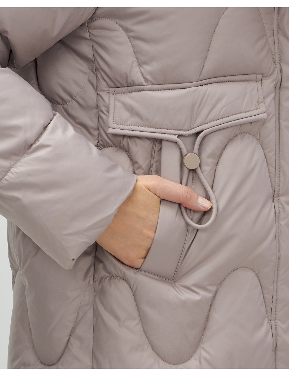 - Свободный покрой: длина до колена и длинные рукава с манжетами позволяют сочетать пуховик с разной одеждой.