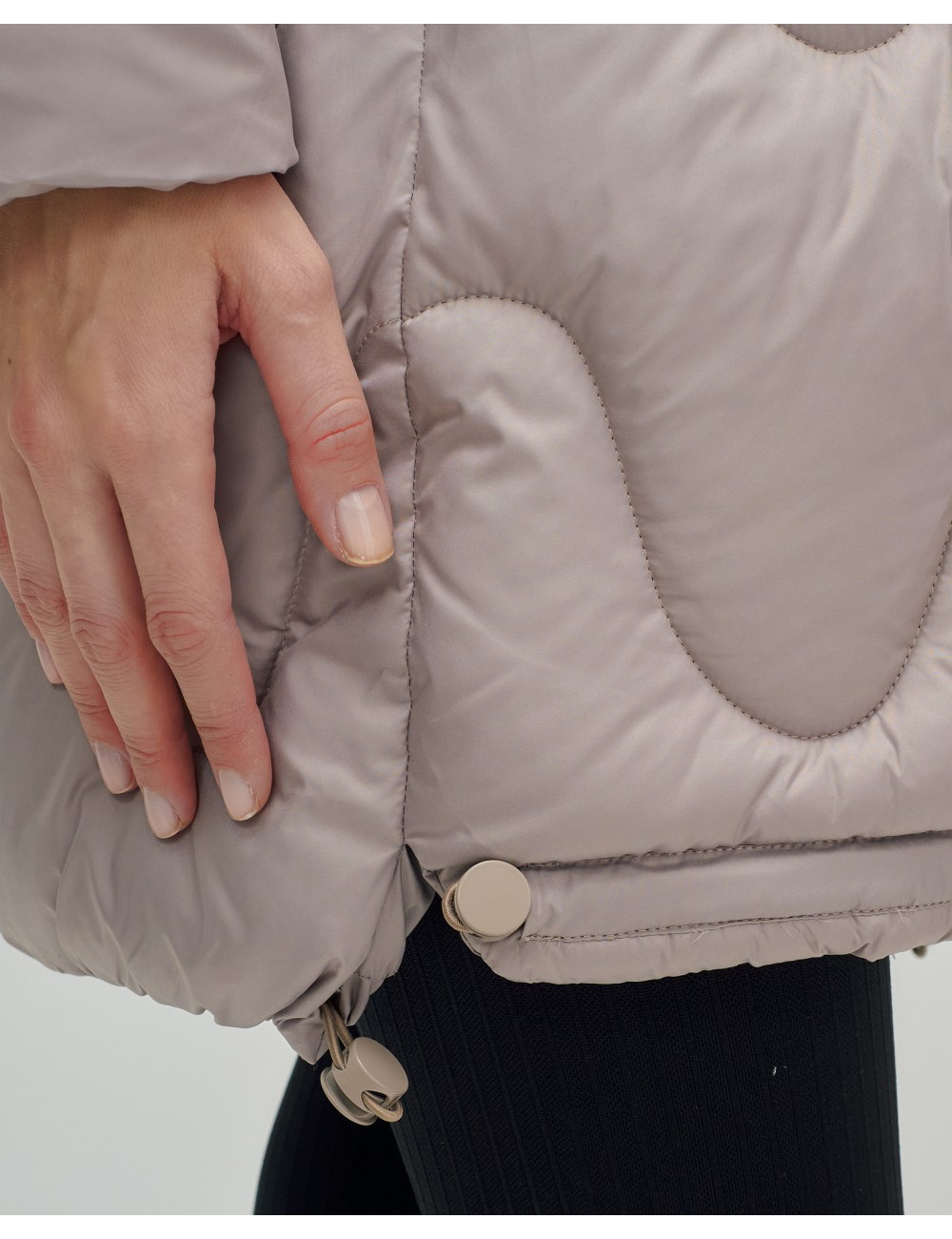 - Фиксаторы: на капюшоне, по низу пуховика и около карманов для дополнительной защиты и комфорта.