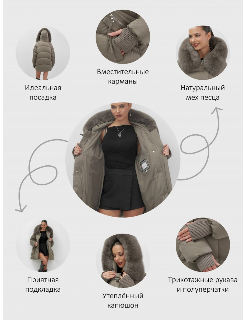 Не упустите возможность приобрести эксклюзивный пуховик премиум-класса и подчеркнуть свой статус и безупречный вкус! Доставка по Москве и Московской области Женский зимний пуховик с мехом и капюшоном, коричневый тренд