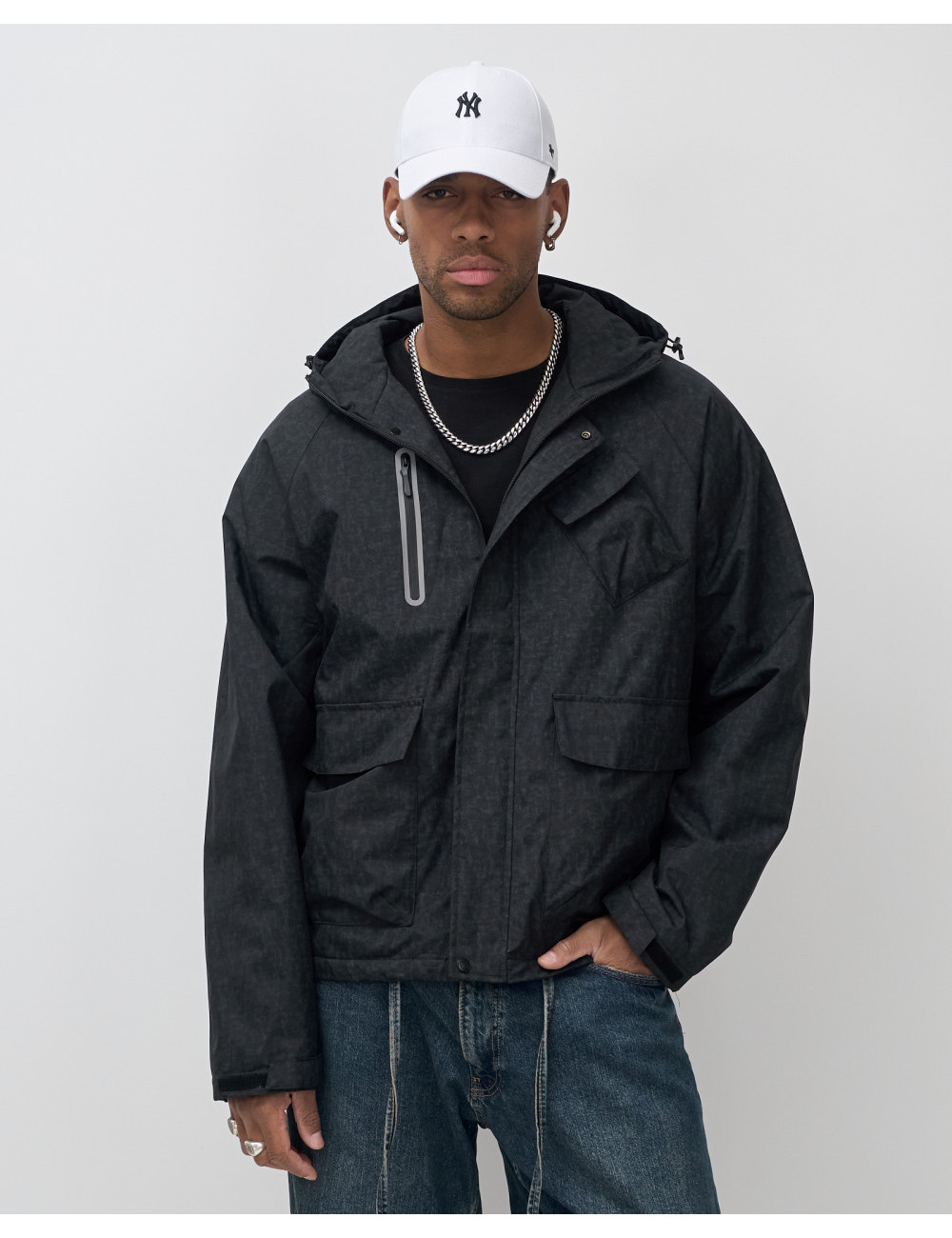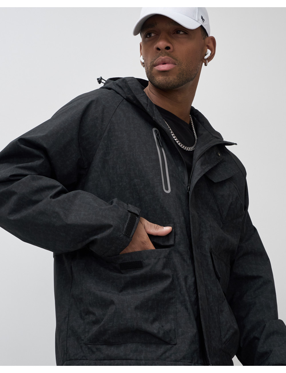 На складе: 1 шт. Код товара: 8657 Мужская зимняя куртка с капюшоном из экокожи для активного отдыха12488 ₽