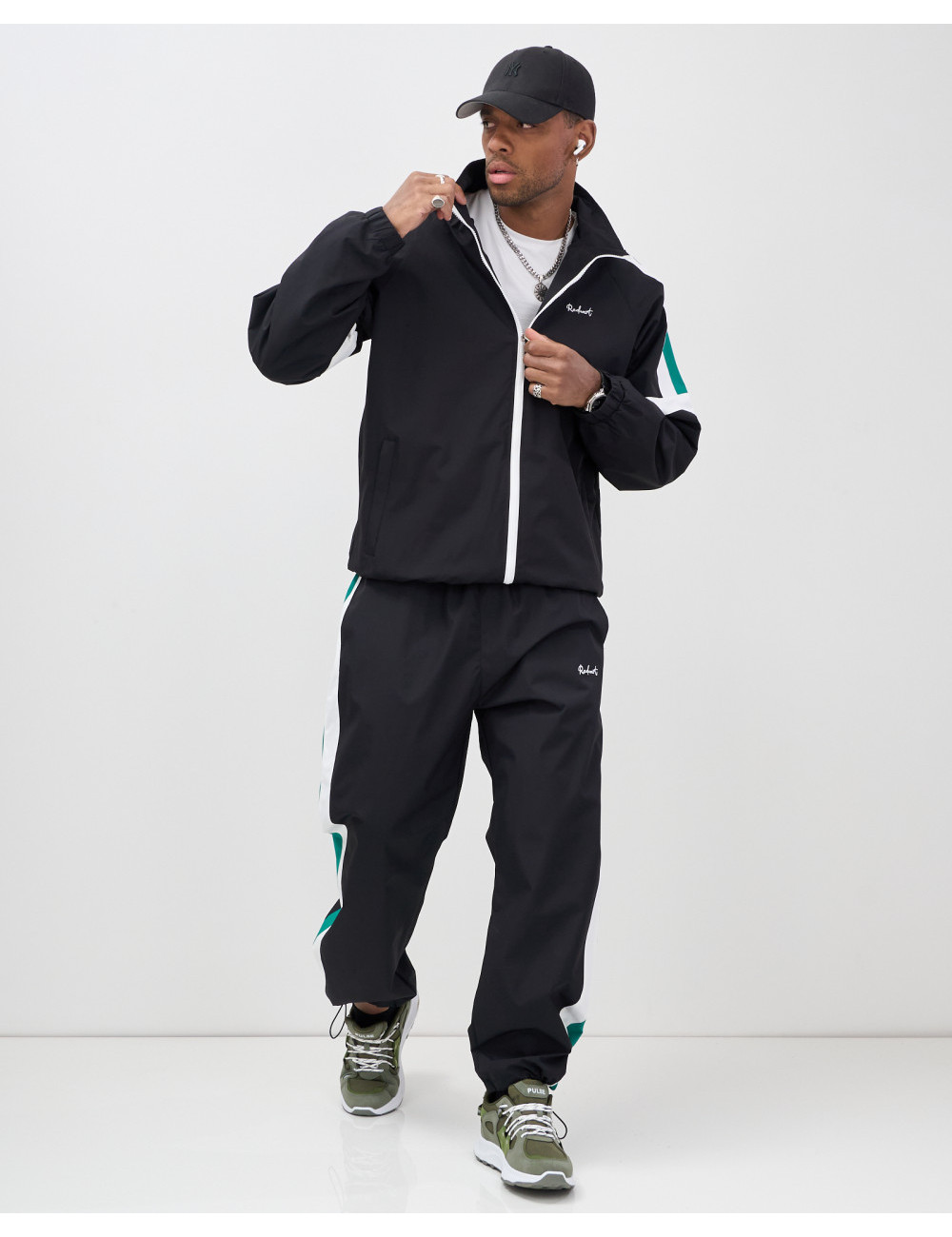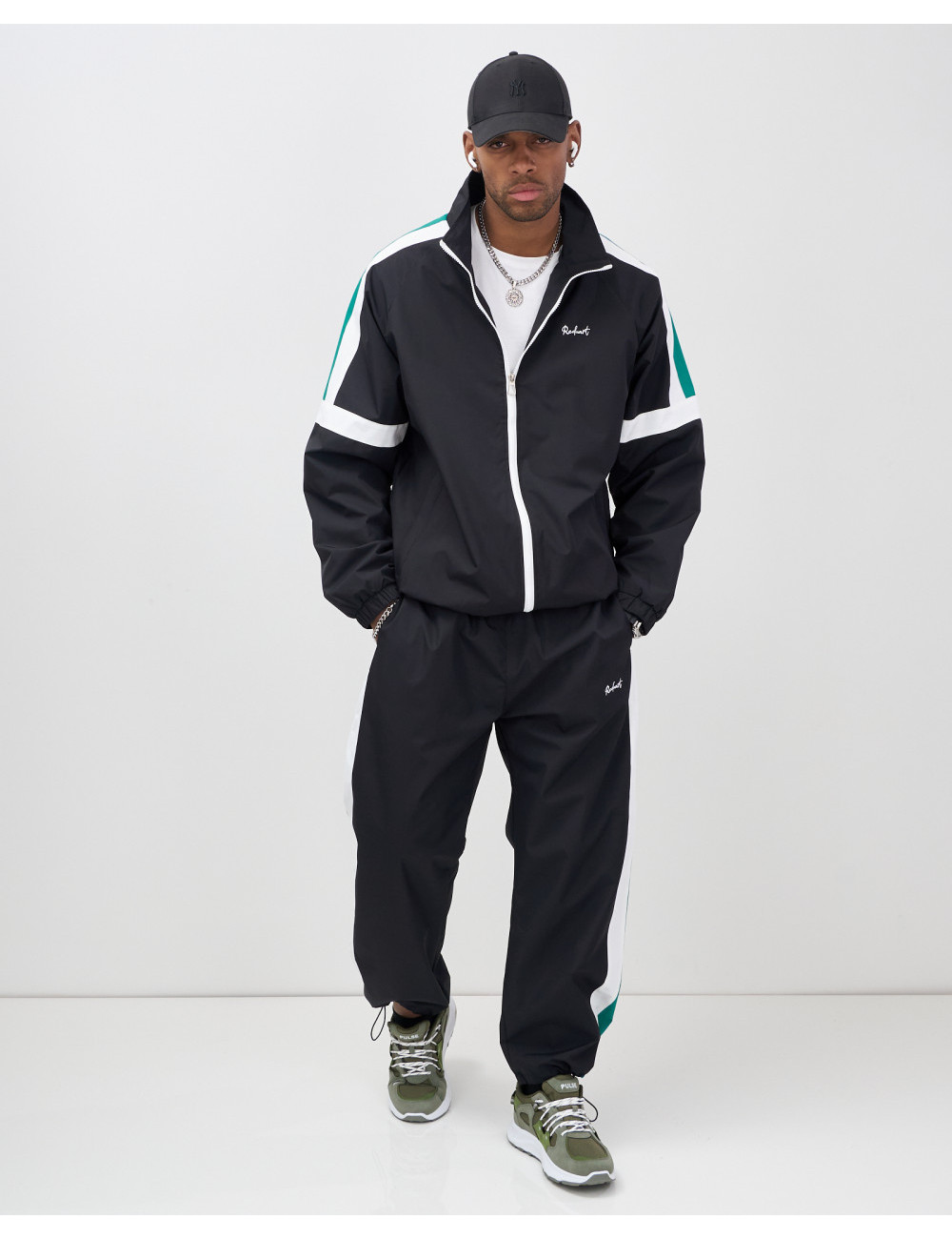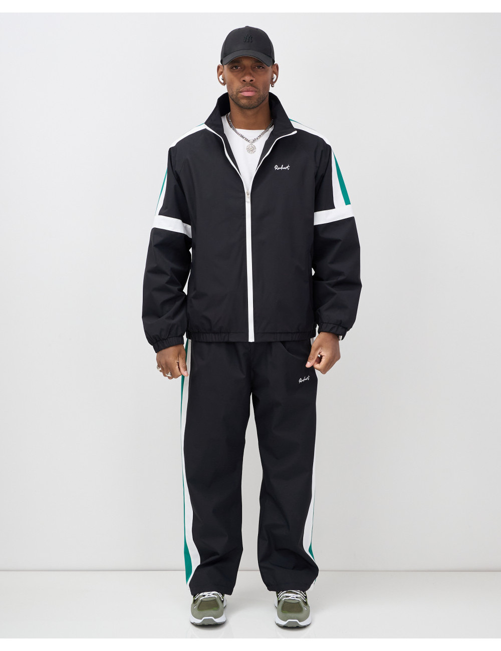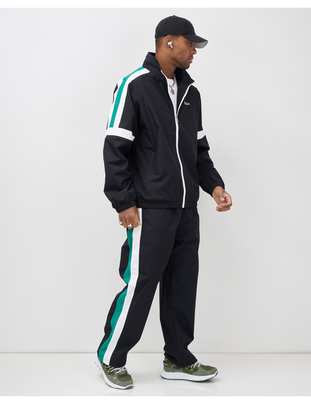Модель включает в себя олимпийку с длинным рукавом и брюки с фиксатором. Свободный покрой и стояче-отложной вырез горловины придают вам современный вид, который идеально вписывается в уличную моду.