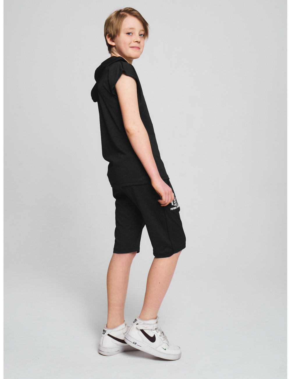 Ваш ребёнок будет выглядеть модно и уверенно в этом костюме. Желаем продуктивной тренировки, приятного использования и отличного настроения! Доставка по Москве и Московской области Спортивный костюм летний для мальчика тёмно-серый