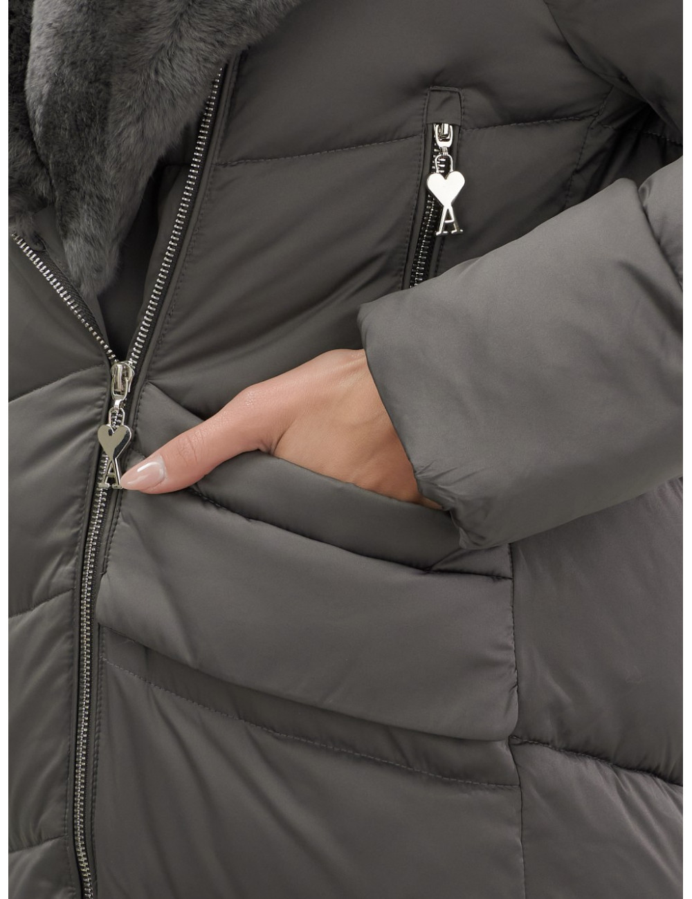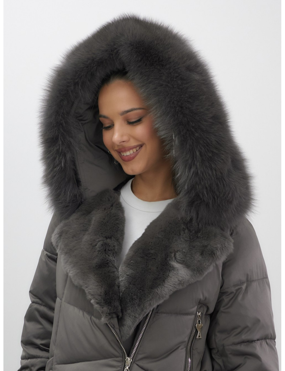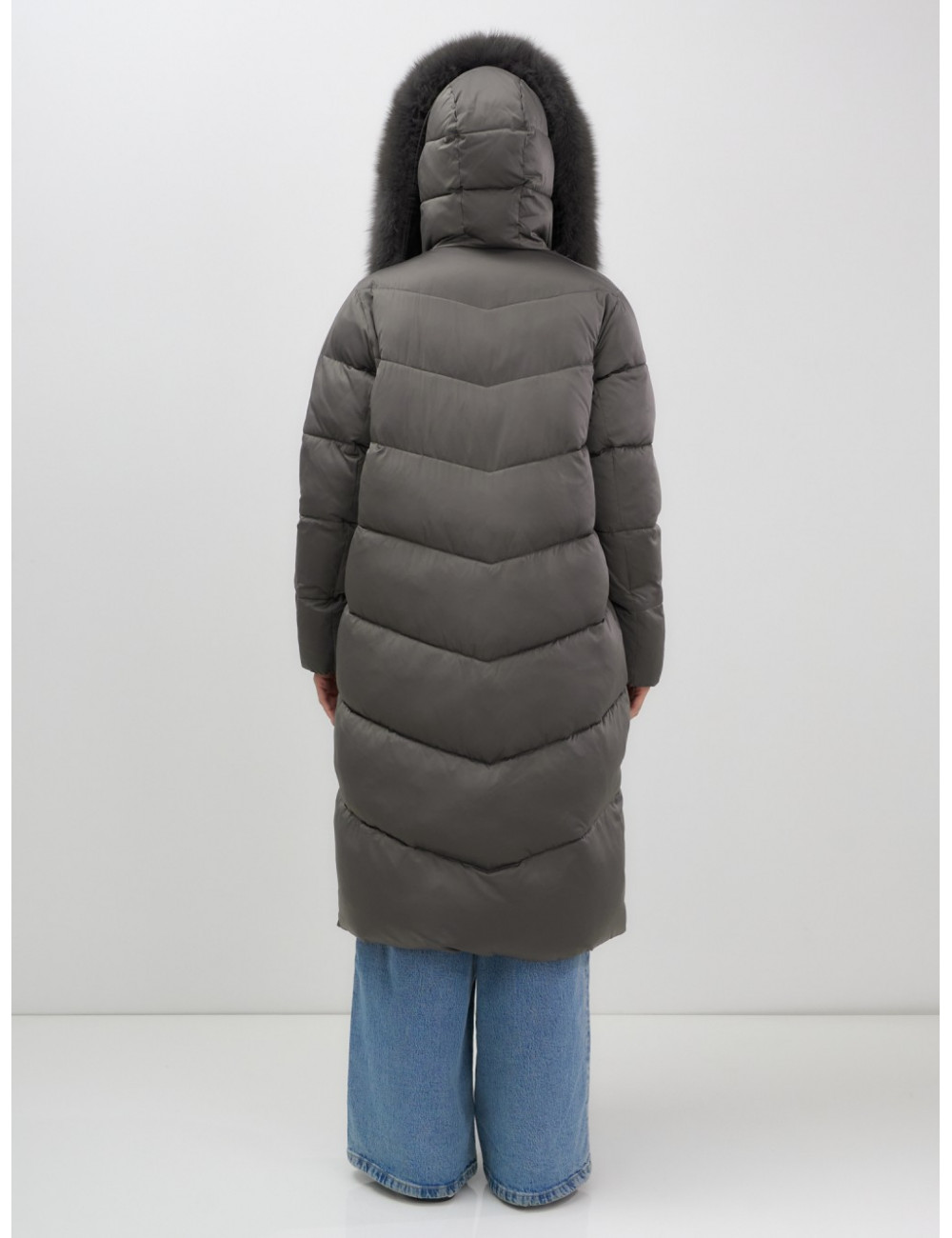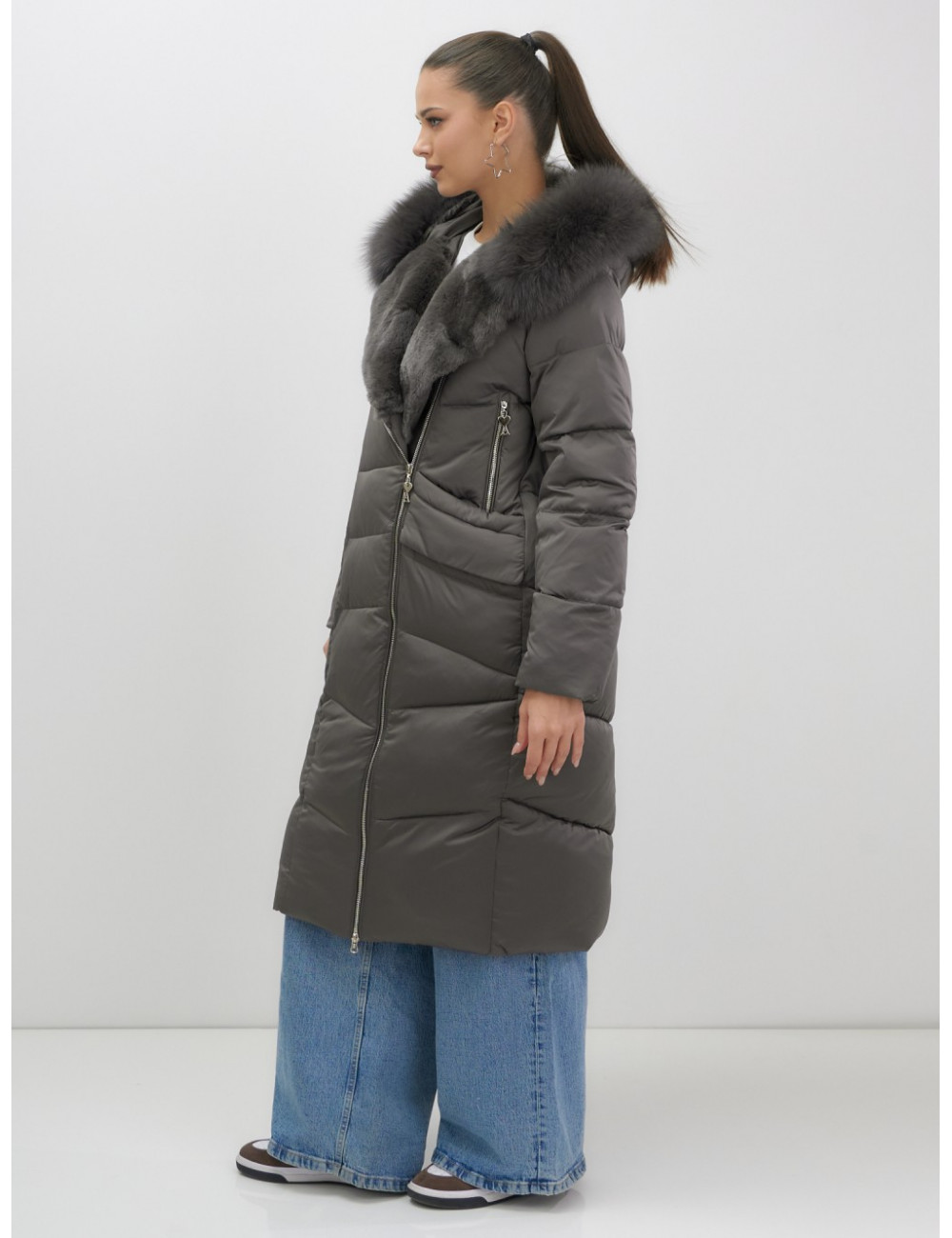 Купить за 21809 ₽ в Москве Тёмно-серый утеплённый пуховик с мехом и капюшоном