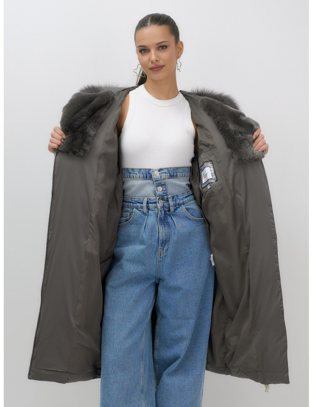 - Изысканный английский воротник из натурального меха кролика и роскошная съёмная опушка из песца создают неповторимый силуэт.
