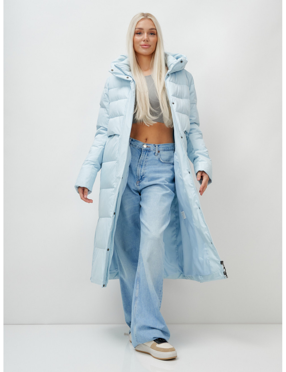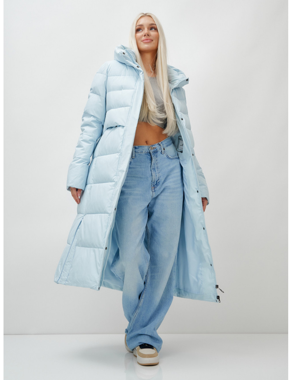 Не упустите возможность добавить этот стильный и практичный элемент в ваш гардероб! Закажите пуховик от Ketsi прямо сейчас и будьте готовы к любым погодным условиям! Доставка по Москве и Московской области Длинный пуховик женский голубой с капюшоном зимний утеплённый стёганый