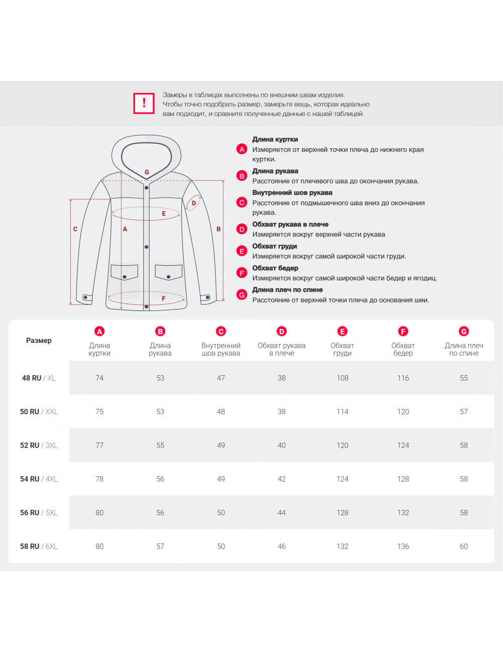 | Декоративные элементы | Воротник, Капюшон, Карманы, Молния |