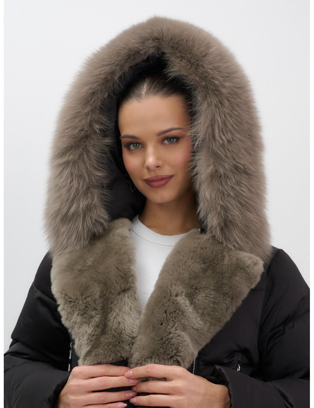 - Изысканный английский воротник из натурального меха кролика и роскошная съёмная опушка из песца.