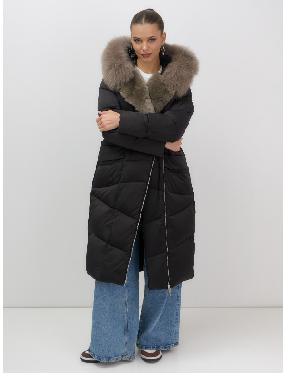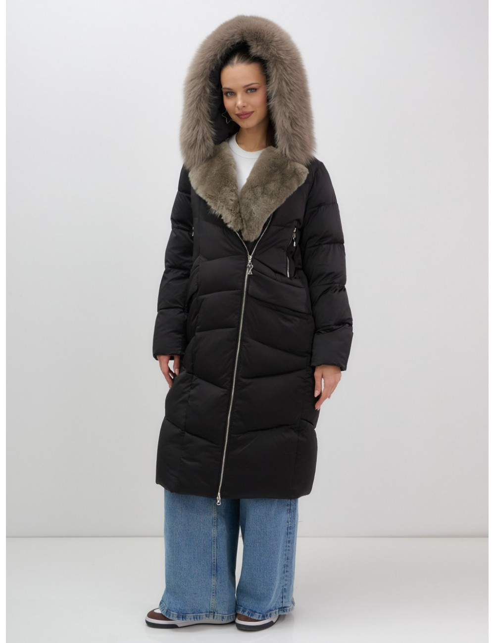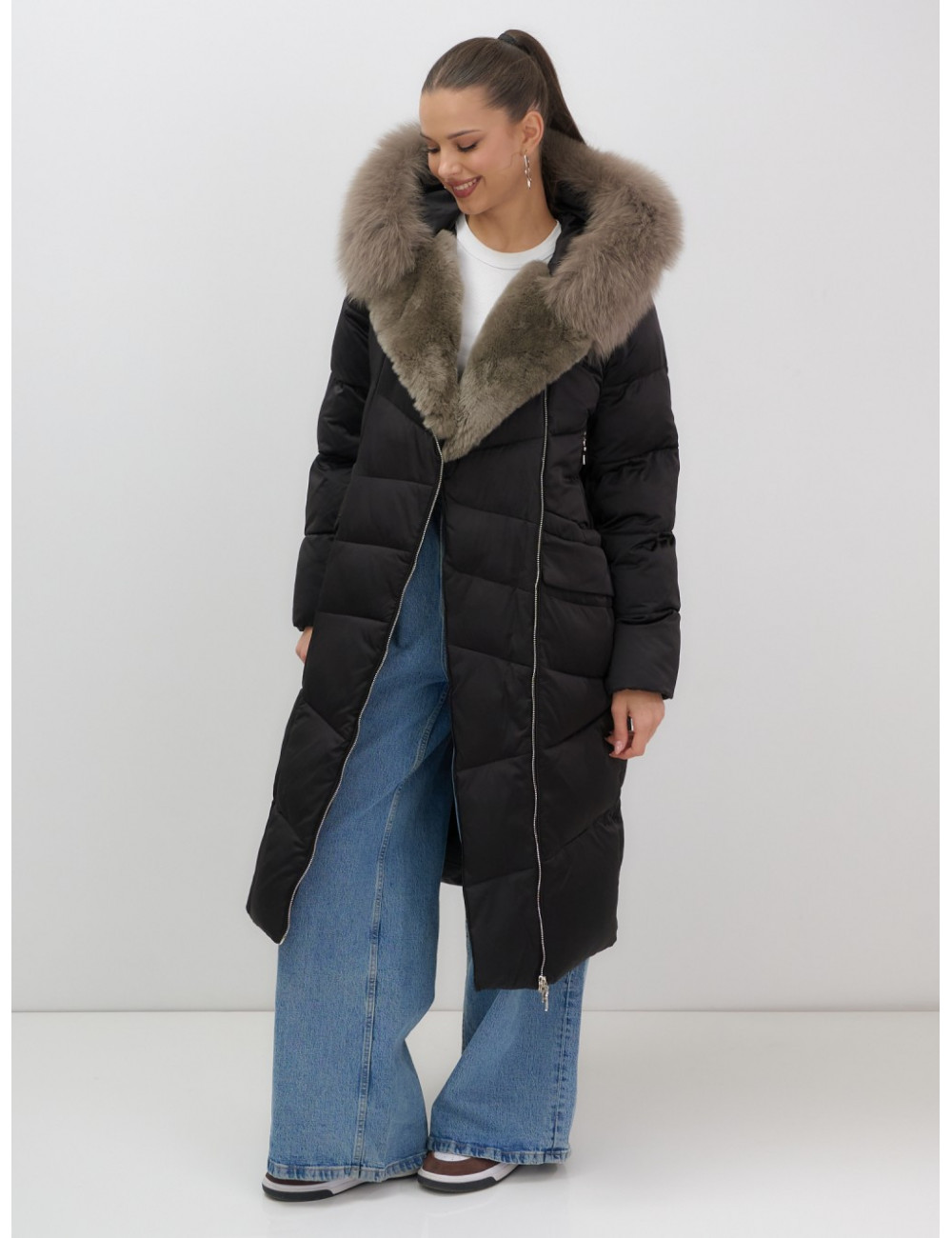 Купить за 21809 ₽ в Москве Утеплённый двубортный пуховик с мехом и капюшоном, чёрный Пуховик премиум-класса 2025: роскошь и комфорт