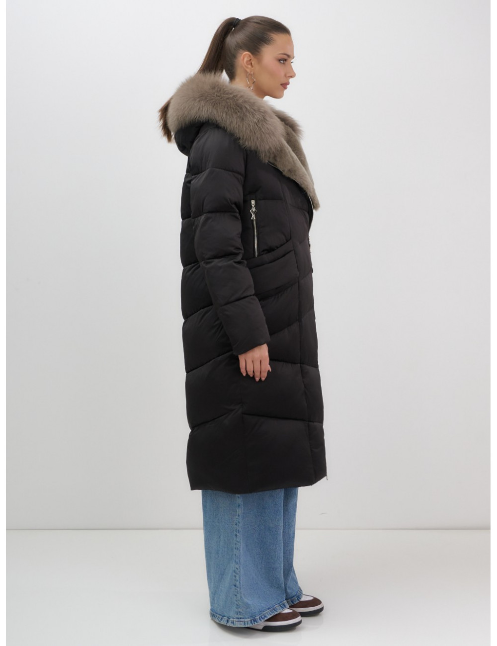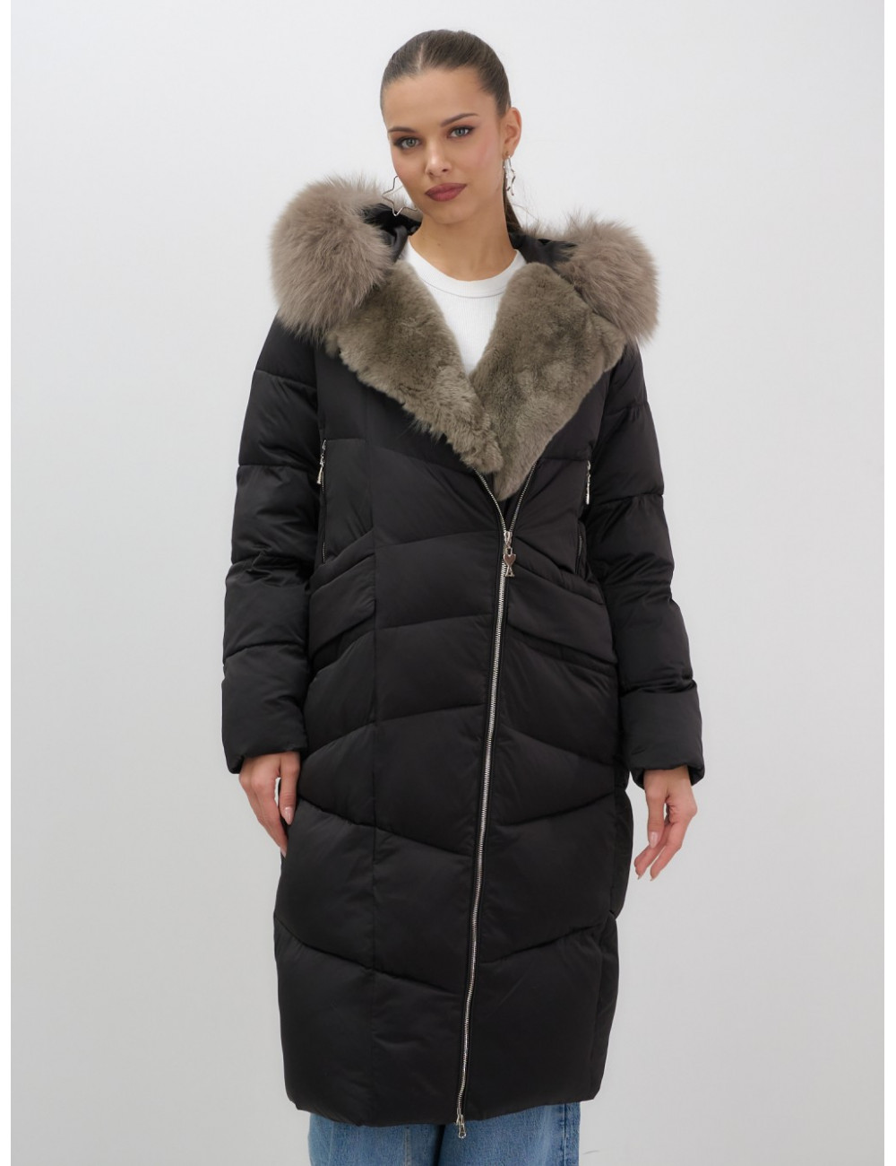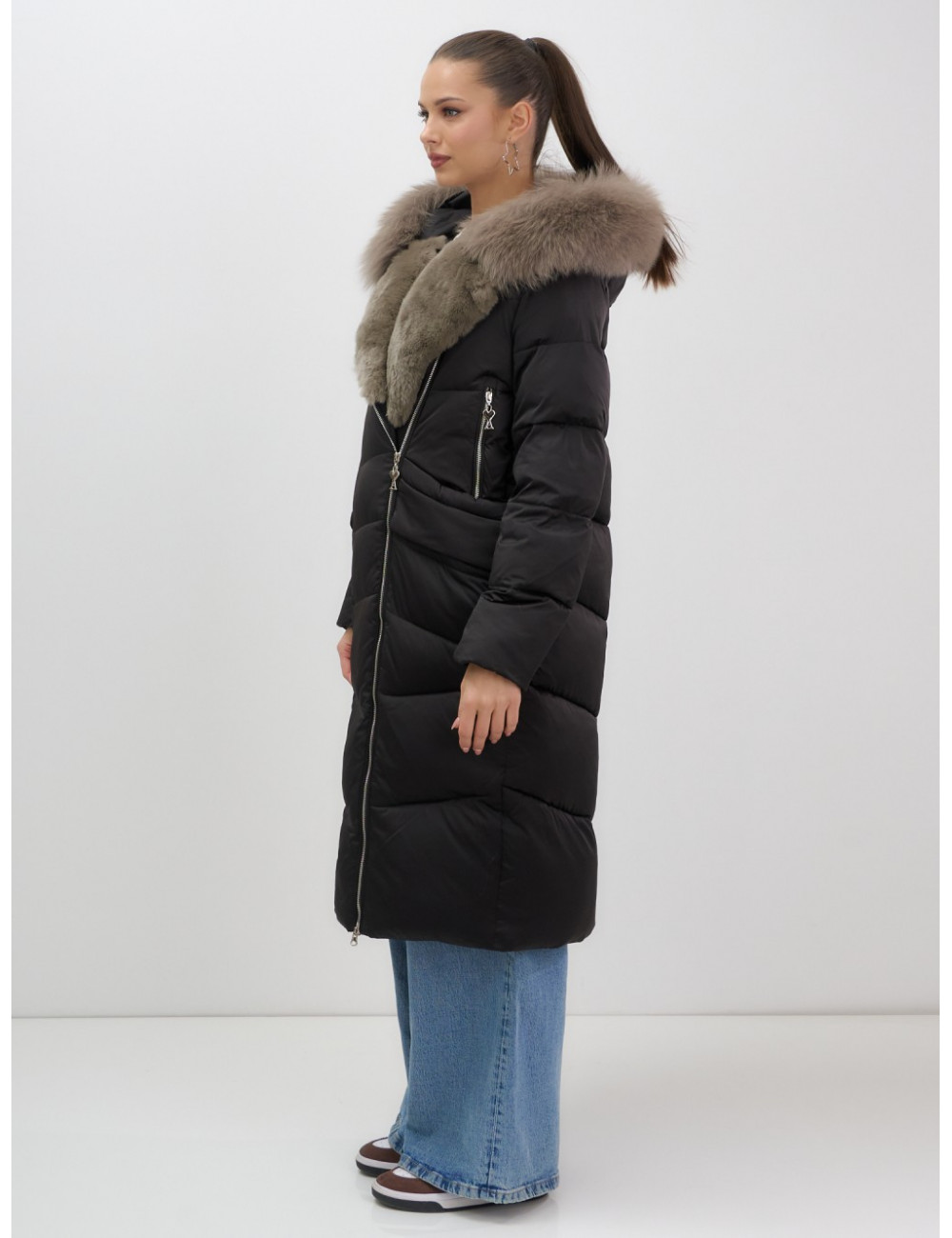 Купить за 21809 ₽ в Москве Утеплённый двубортный пуховик с мехом и капюшоном, чёрный Пуховик премиум-класса 2025: роскошь и комфорт