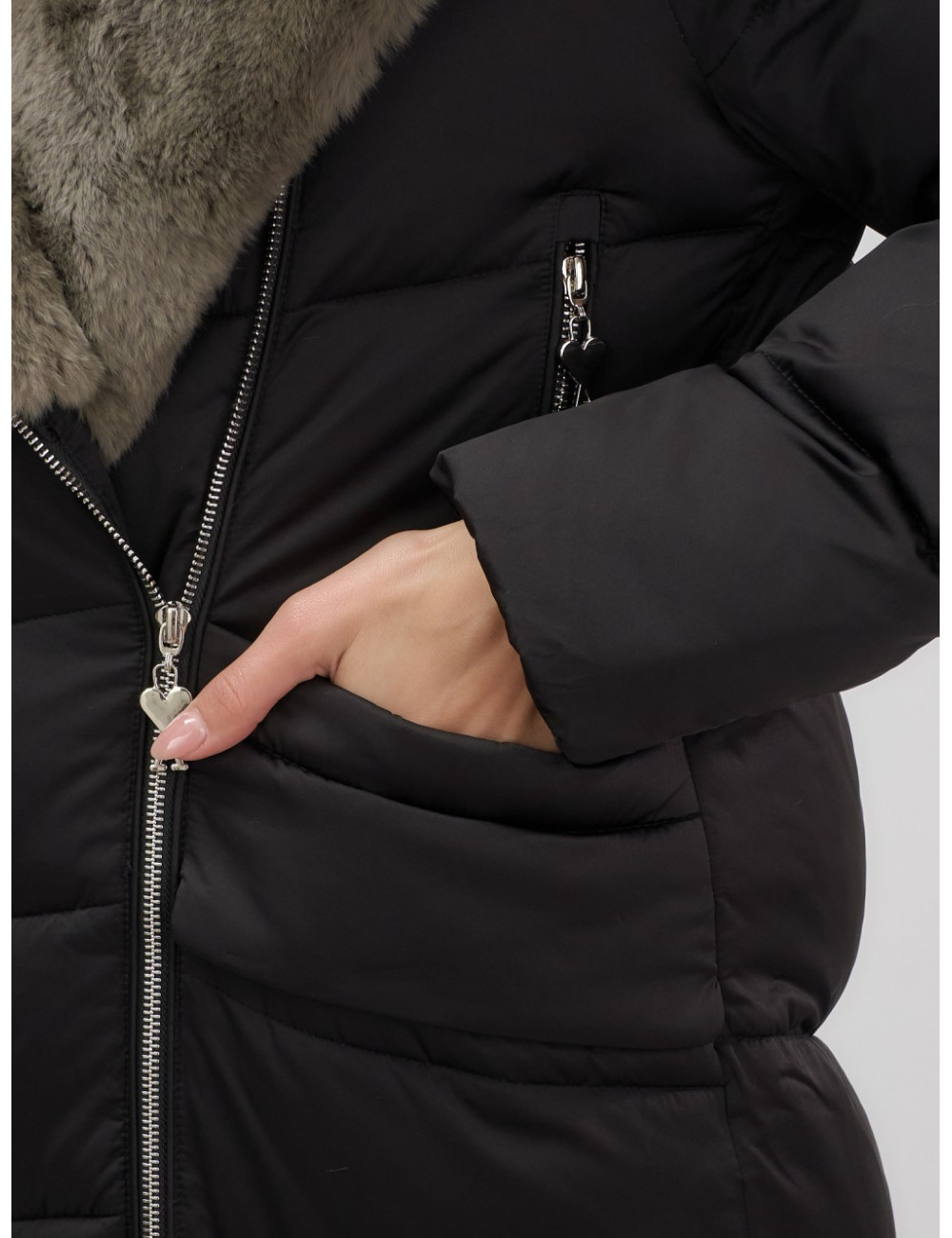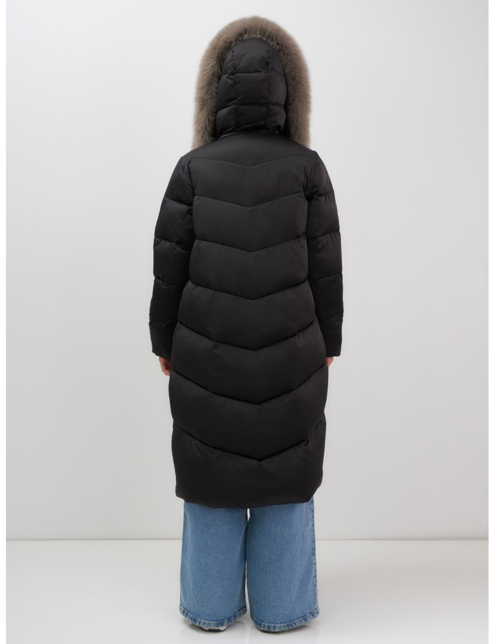 Технические характеристики Утеплённый двубортный пуховик с мехом и капюшоном, чёрный