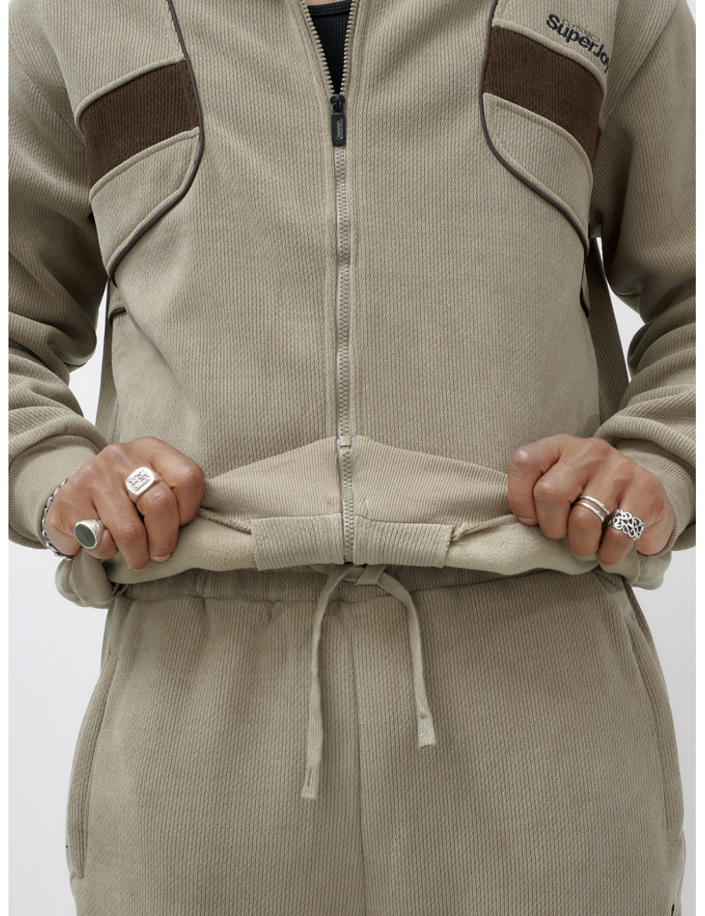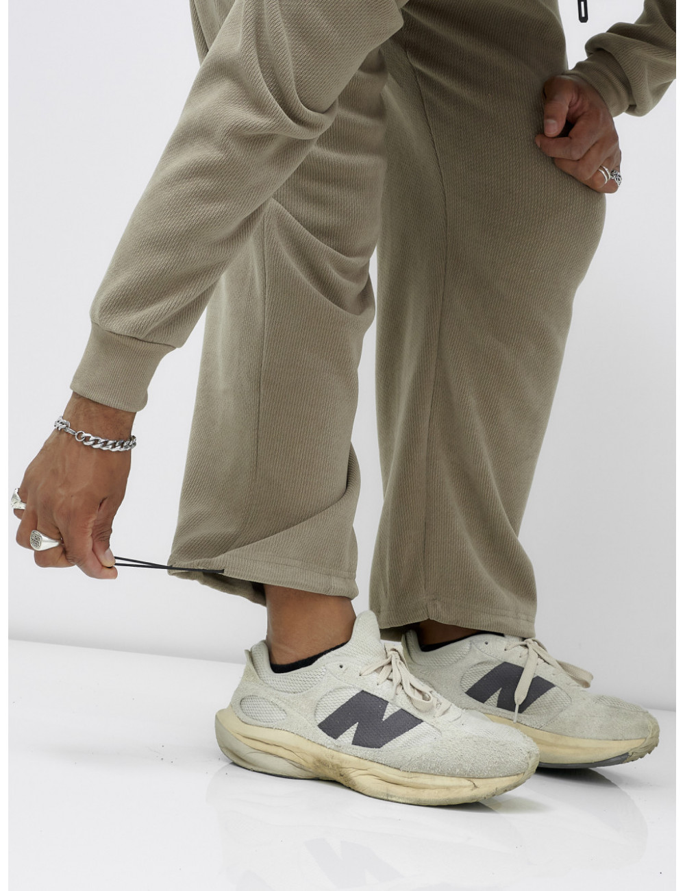 Спортивные брюки имеют широкую резинку в талии с шнурком, что обеспечивает идеальную посадку и комфорт при любых движениях. Боковые карманы на молнии делают брюки практичными и безопасными. Низ брюк с утягивающей кулиской позволяет регулировать длину штанин по своему усмотрению, создавая идеальный силуэт и защищая от холодного воздуха.