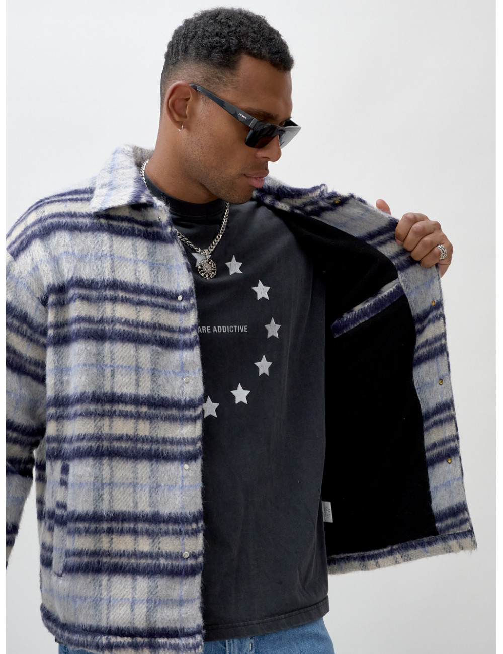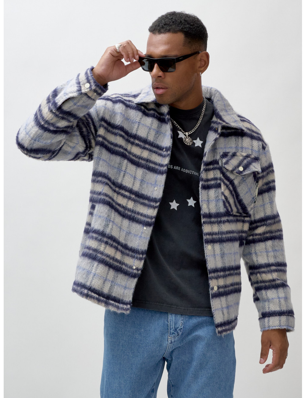 Погрузитесь в новый уровень комфорта и стиля с рубашкой от Ketsi — вашим идеальным спутником в любое время года! Доставка по Москве и Московской области Мужская демисезонная куртка-рубашка в клетку, тёмно-синий цвет.