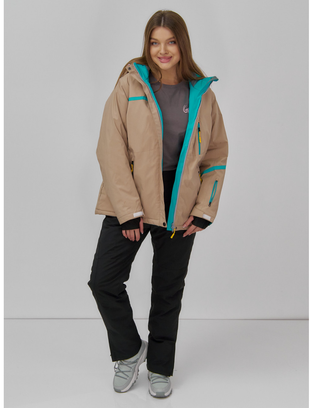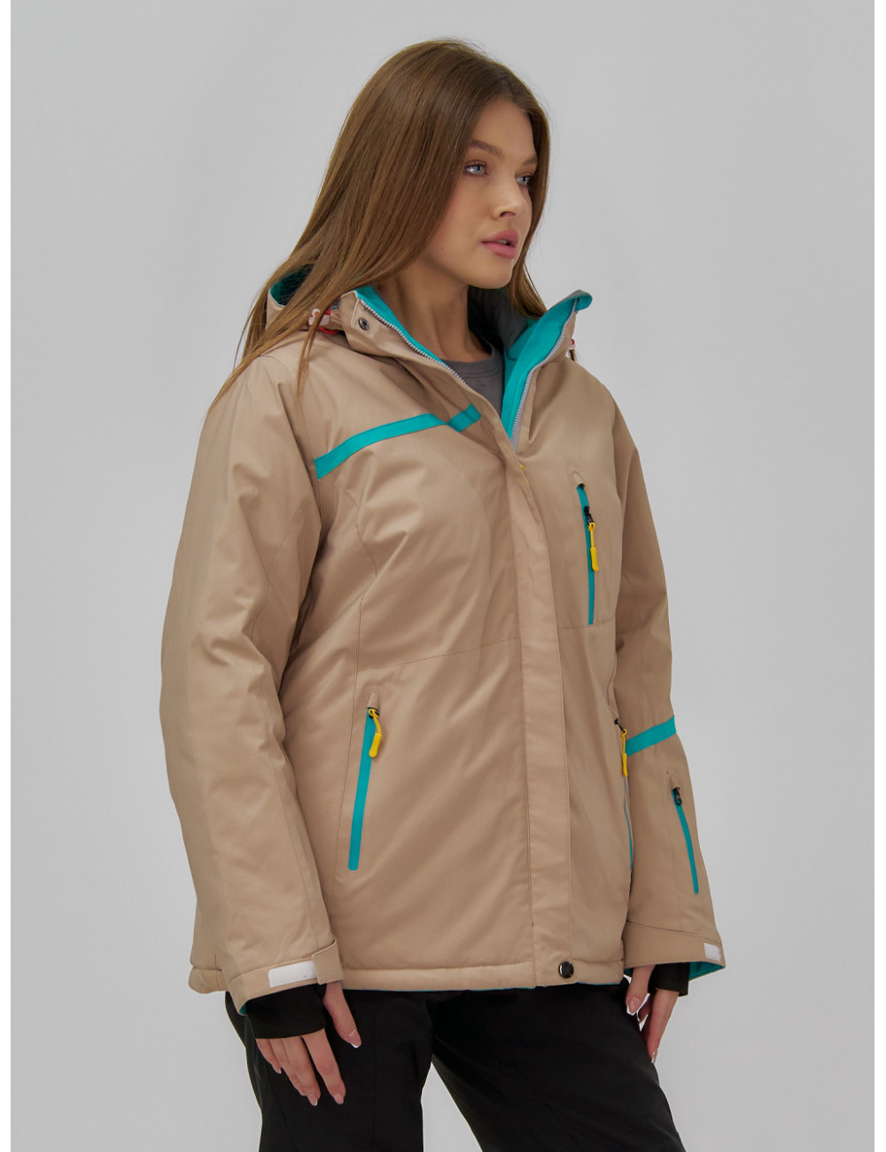 Эта куртка станет вашим идеальным спутником в любых зимних приключениях: на горнолыжных склонах, во время прогулок по заснеженному лесу или при катании на снегоходе. Она отлично сочетается с брюками для зимних видов спорта и термобельём, обеспечивая максимальный комфорт и защиту от холода. Доставка по Москве и Московской области Женская горнолыжная куртка большого размера бежевого оттенка, зимняя.