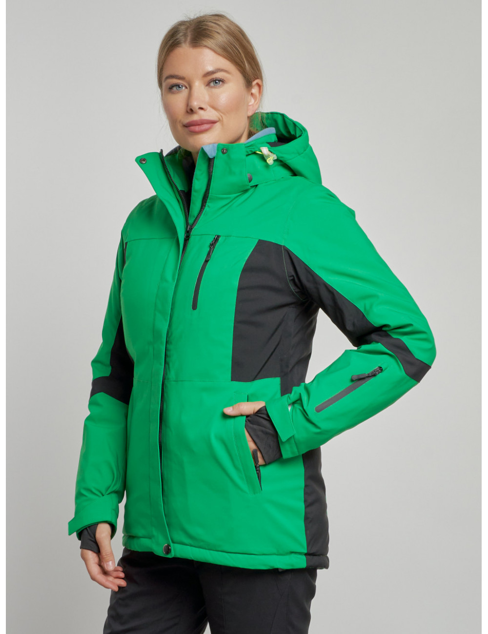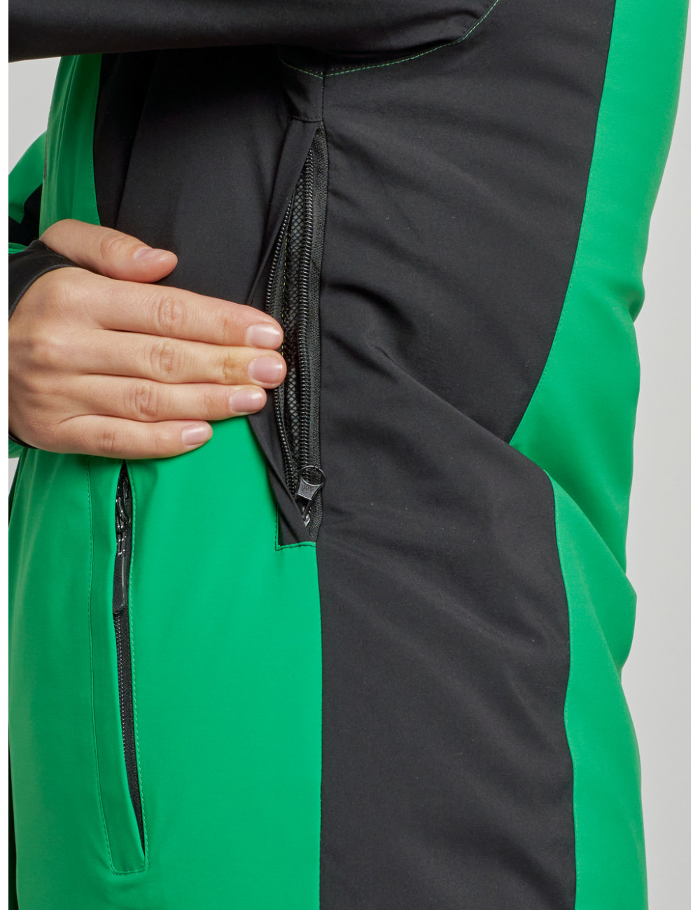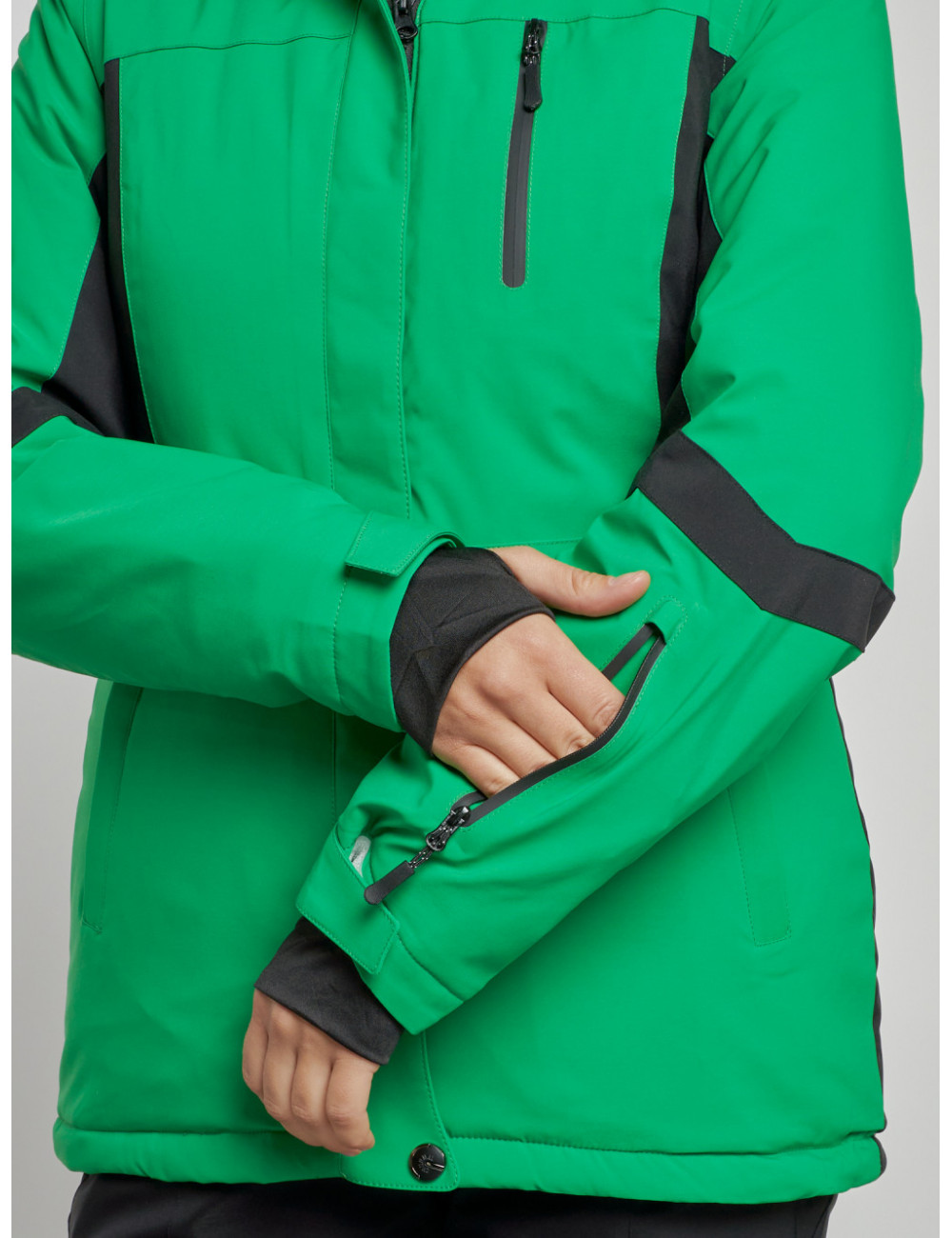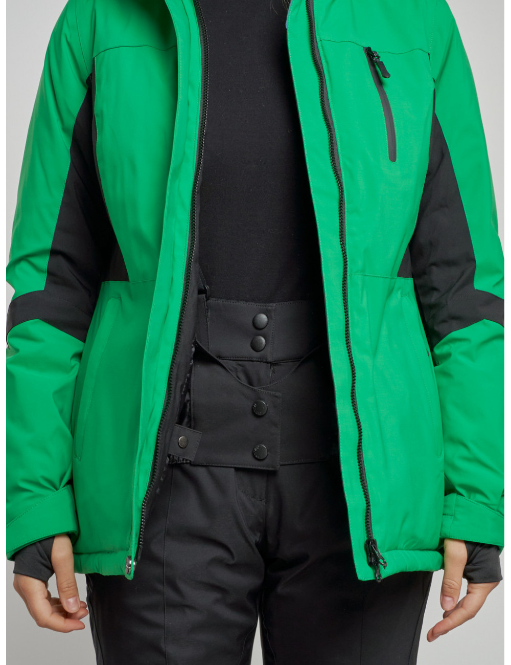 - Снегозащитная юбка и карманы на молнии делают использование куртки ещё более удобным.