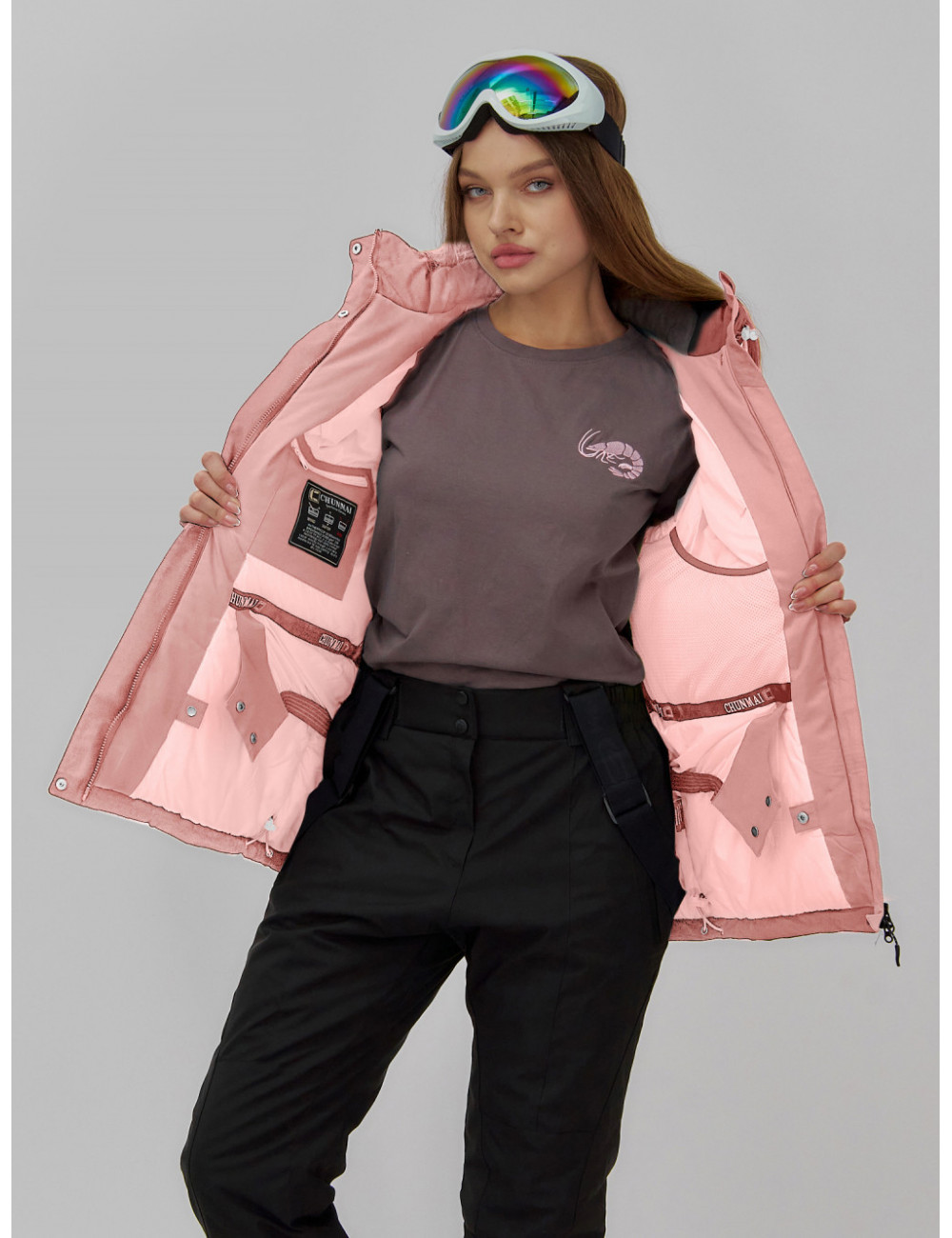Эта куртка станет отличным дополнением к вашему зимнему гардеробу. Она прекрасно сочетается с горнолыжными брюками, тёплыми шапками и термобельём. Подготовьтесь к зимним приключениям с надёжным спутником от Ketsi! Доставка по Москве и Московской области Женская горнолыжная куртка персикового цвета.