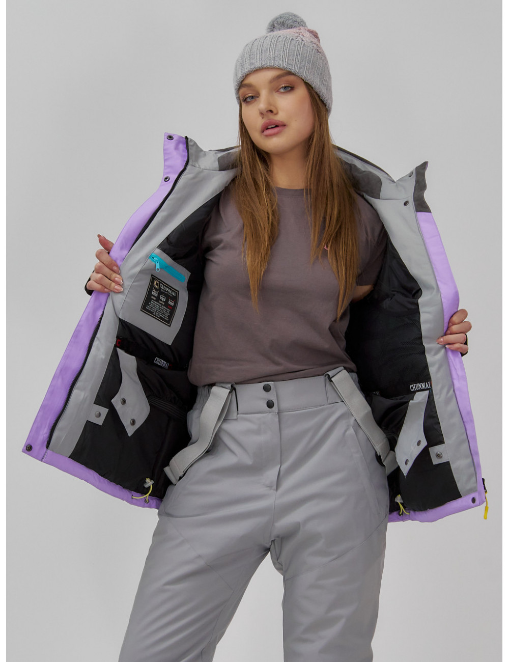 Эта горнолыжная куртка отлично сочетается с термобельём, тёплыми брюками и аксессуарами для зимних видов спорта. Она станет прекрасным дополнением к вашему зимнему гардеробу и обеспечит комфорт и защиту в любых условиях. Доставка по Москве и Московской области Женская горнолыжная куртка сиреневого цвета, зимняя.