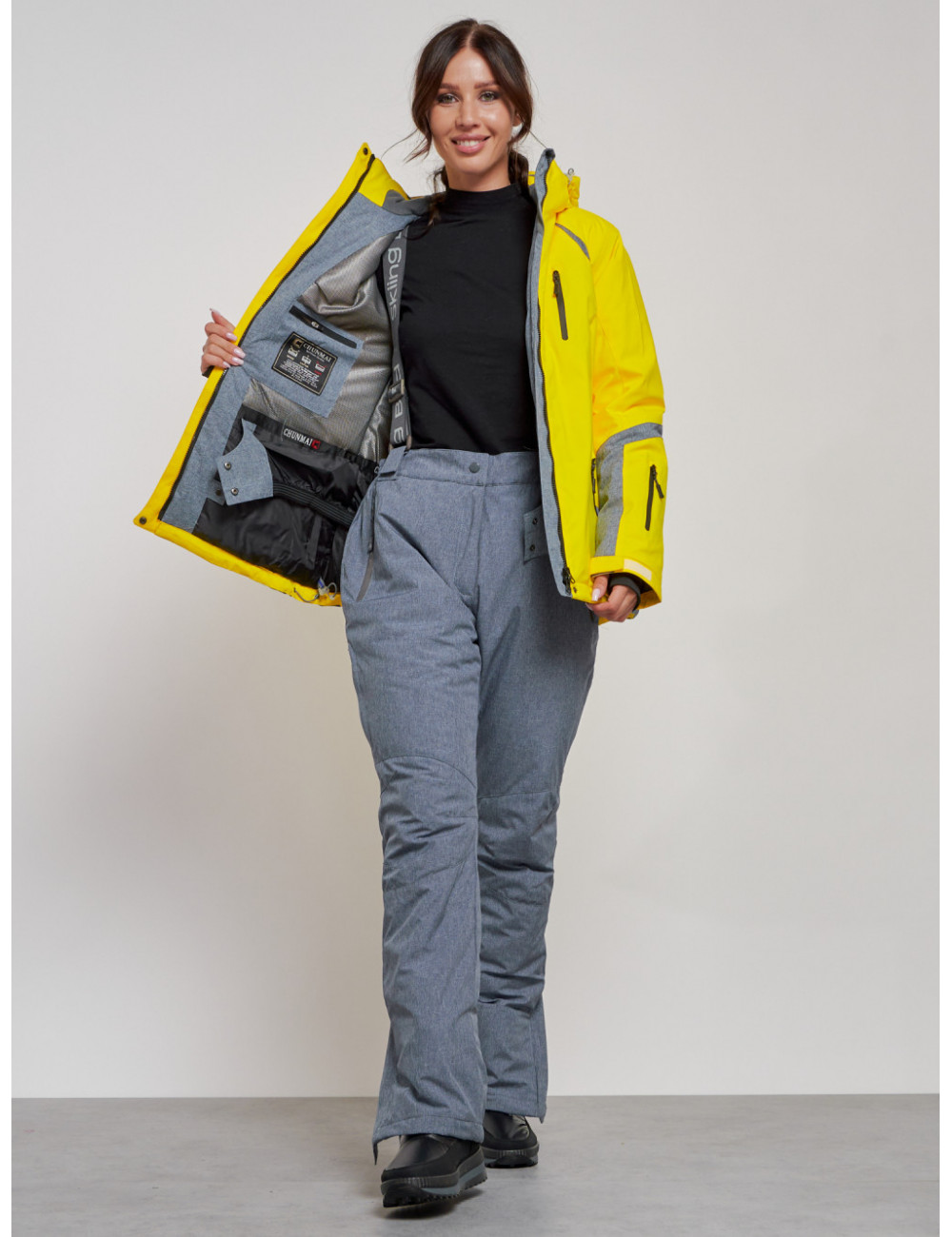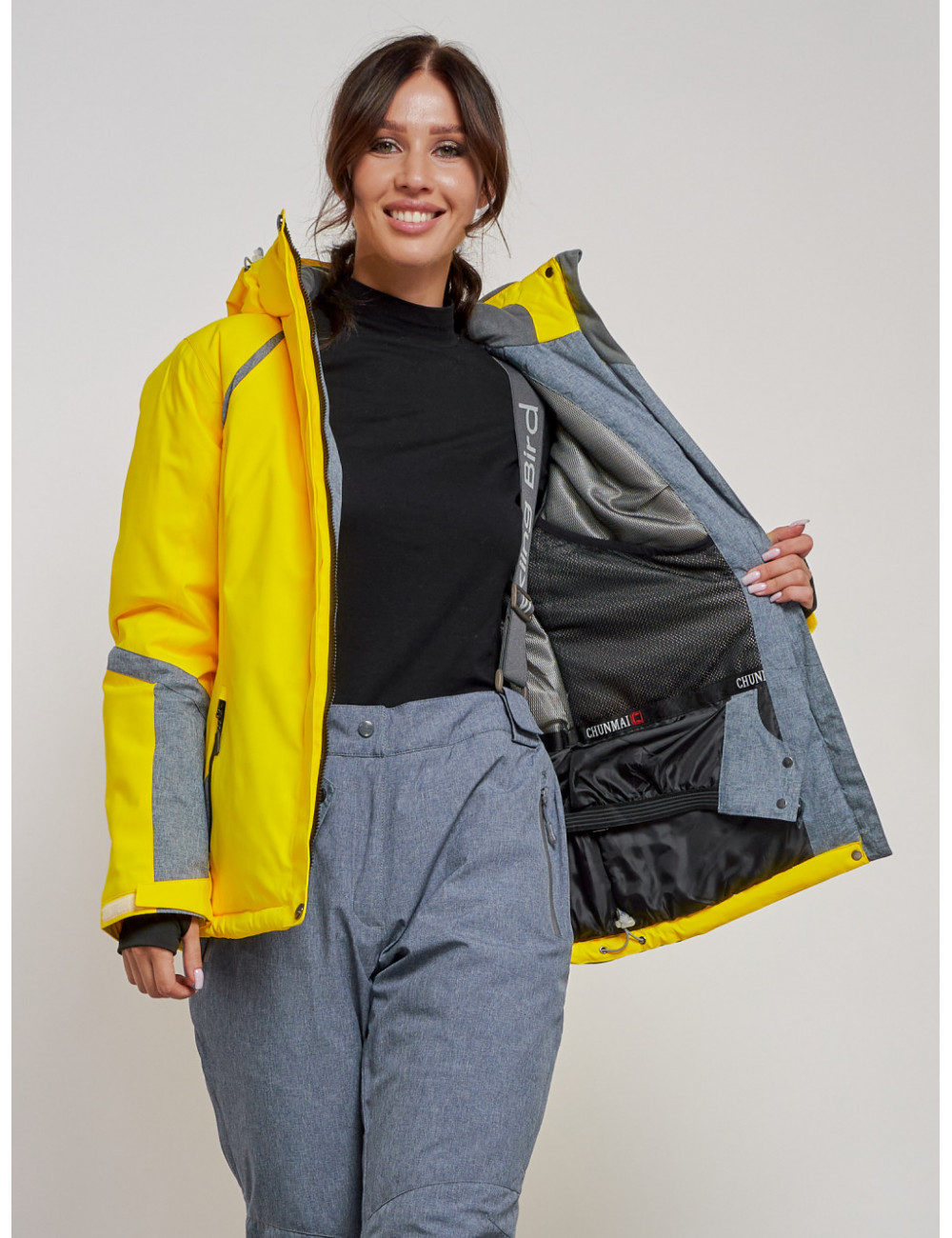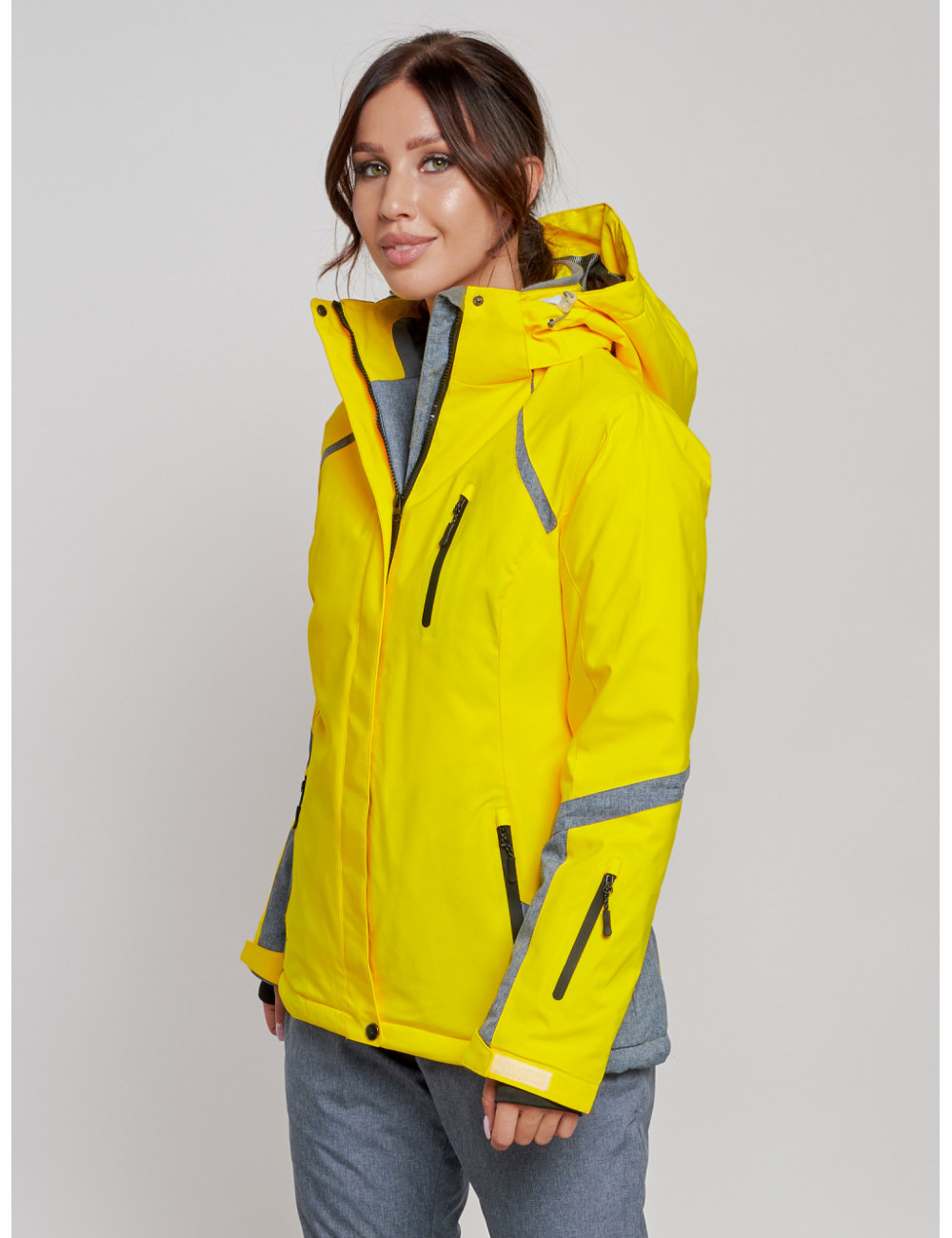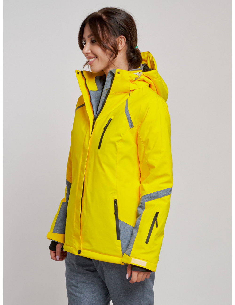 Перед тем как надеть куртку в первый раз, рекомендуется её отпарить для более опрятного вида. Доставка по Москве и Московской области Женская горнолыжная куртка, жёлтый цвет, зима.