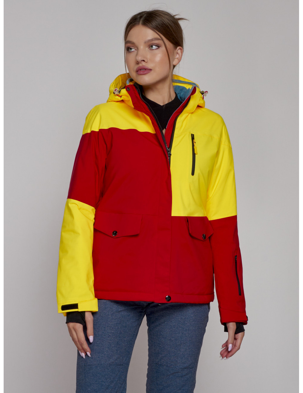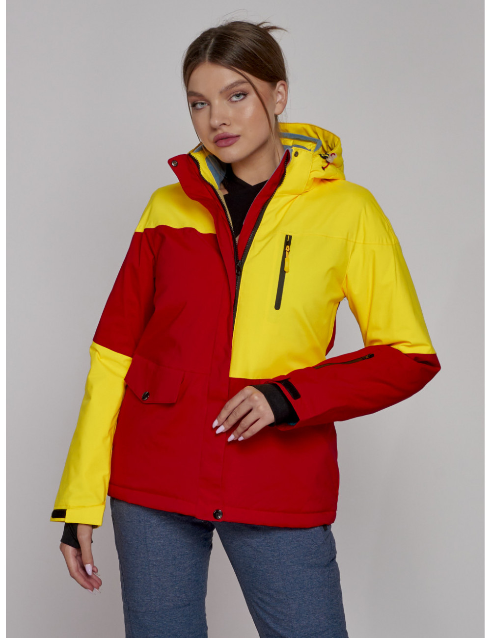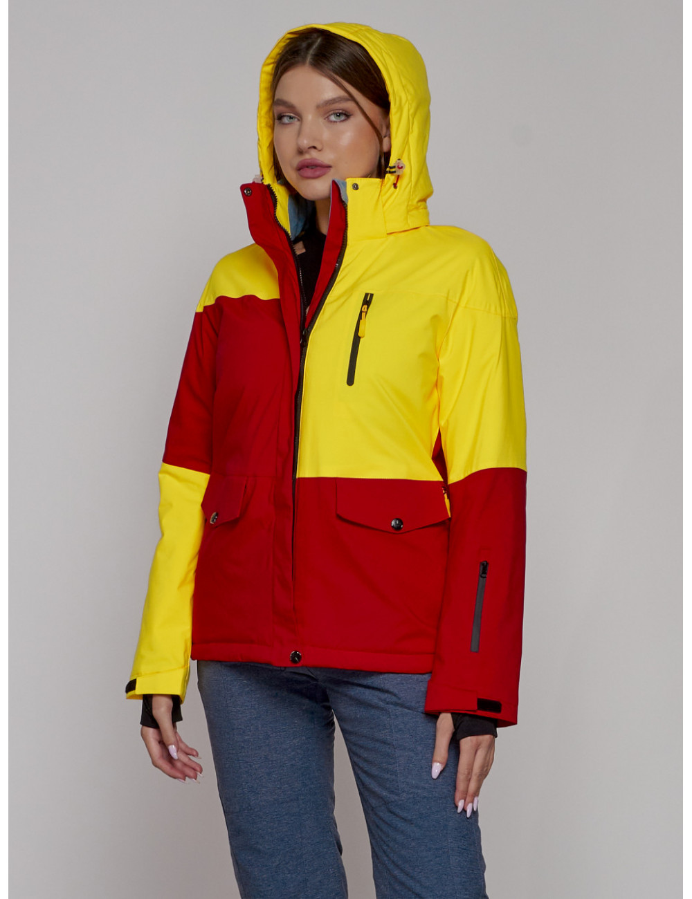 Горнолыжная куртка гармонично сочетается с горнолыжными брюками, термобельём и аксессуарами для зимних видов спорта. Она обеспечит вам комфорт и защиту в любых погодных условиях. Доставка по Москве и Московской области Женская горнолыжная куртка жёлтого цвета, зимняя.