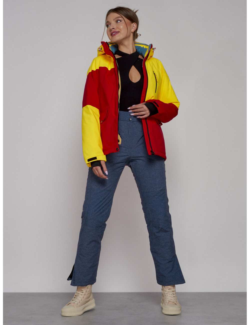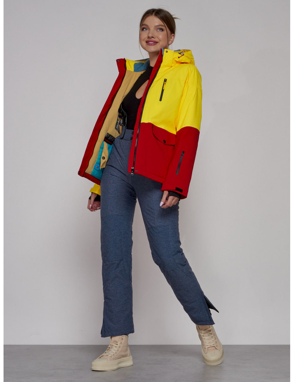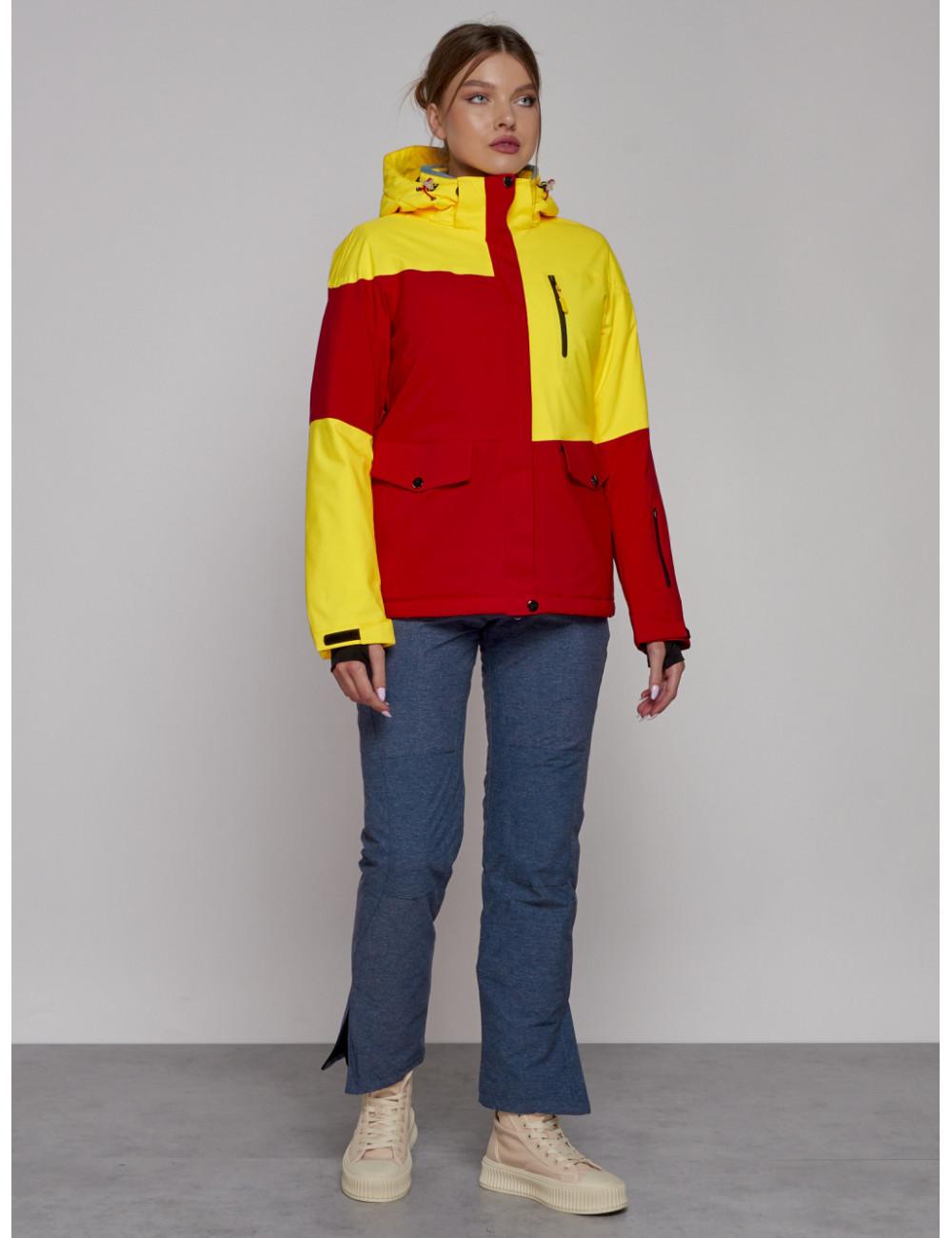 Горнолыжная куртка гармонично сочетается с горнолыжными брюками, термобельём и аксессуарами для зимних видов спорта. Она обеспечит вам комфорт и защиту в любых погодных условиях. Доставка по Москве и Московской области Женская горнолыжная куртка жёлтого цвета, зимняя.