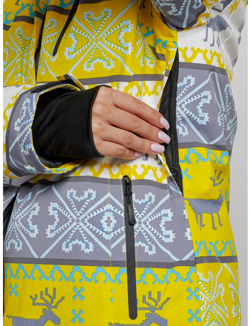 - Удобные карманы на молнии по бокам и карман для ski-pass позволяют хранить необходимые мелочи.