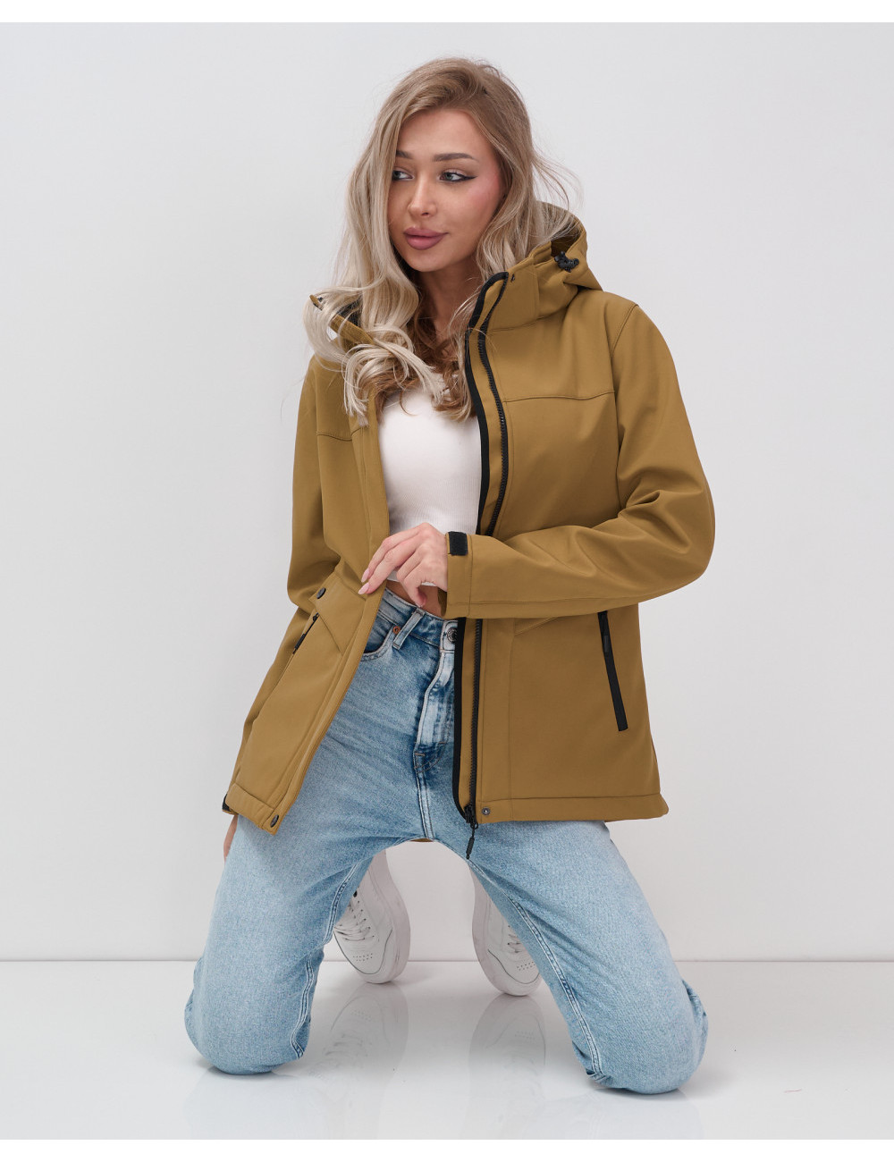 Сделайте выбор в пользу бескомпромиссного качества! Не упустите шанс обновить гардероб — добавьте ветровку в корзину и станьте частью модной революции 2025 года уже сегодня! Доставка по Москве и Московской области Женская спортивная ветровка с капюшоном softshell, горчичный.