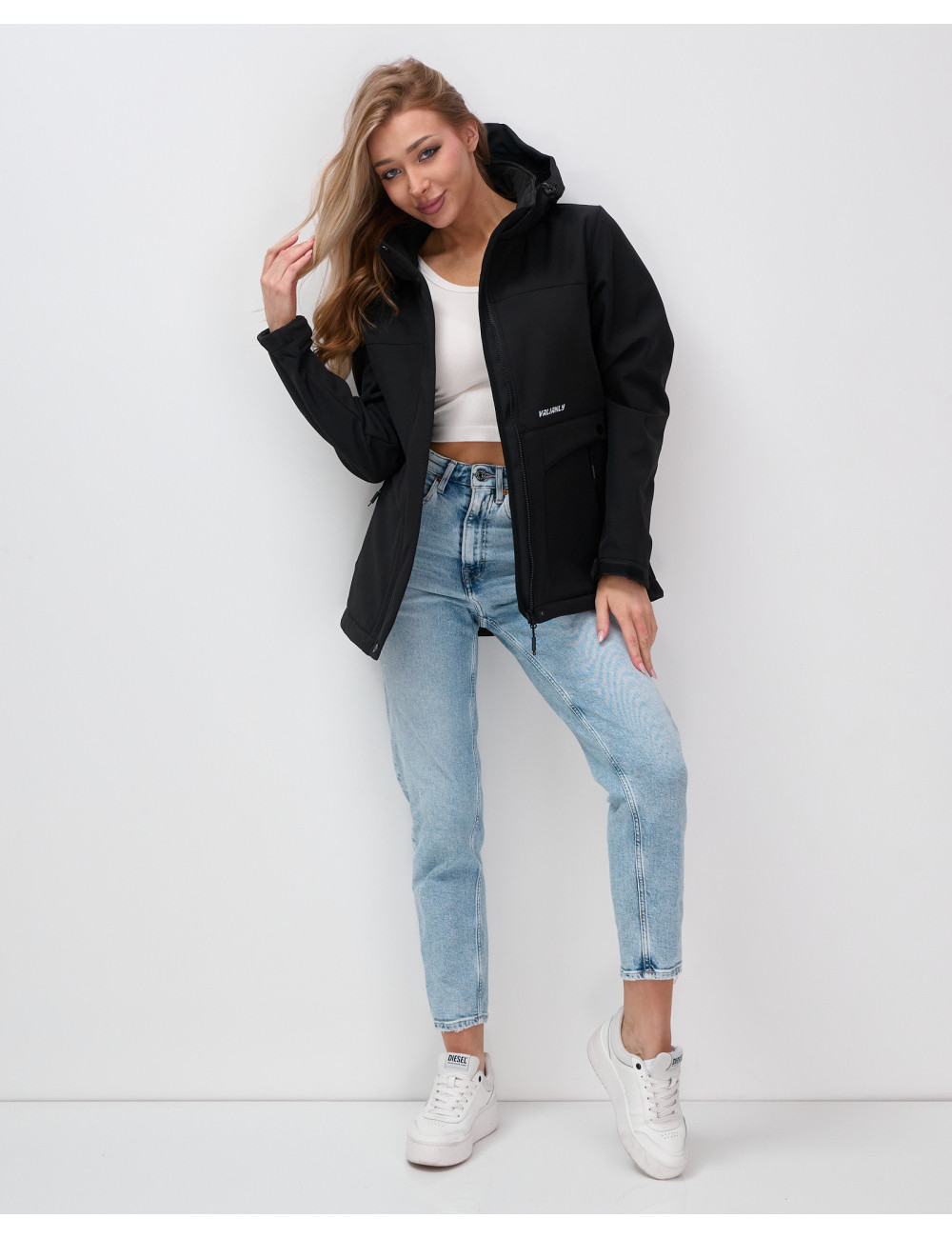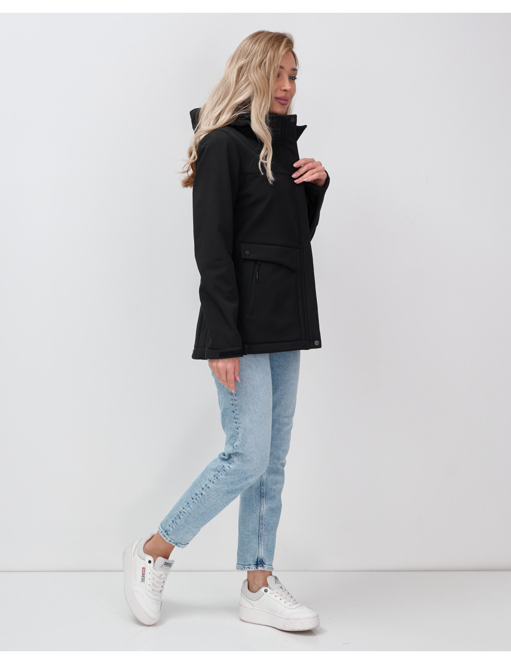Сделайте выбор в пользу бескомпромиссного качества от Ketsi! Доставка по Москве и Московской области Женская спортивная ветровка с капюшоном softshell, чёрная, для активного отдыха