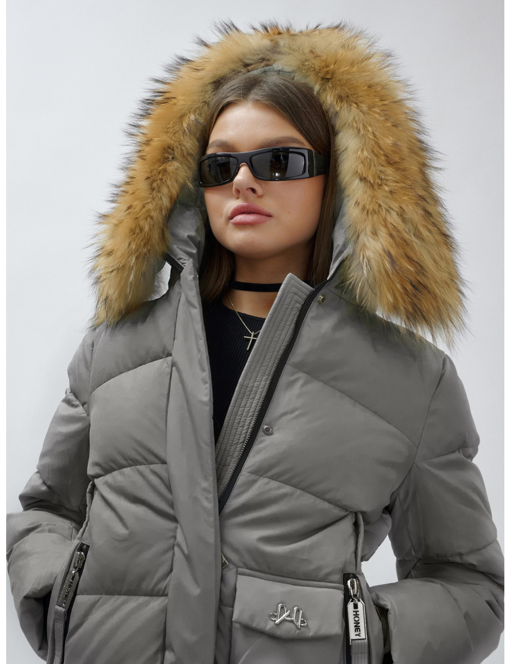 Не упустите возможность стать обладательницей этой великолепной куртки от Ketsi — она точно станет любимой частью вашего зимнего гардероба! Доставка по Москве и Московской области Пуховик женский зимний с мехом енота премиум-класса, серый.