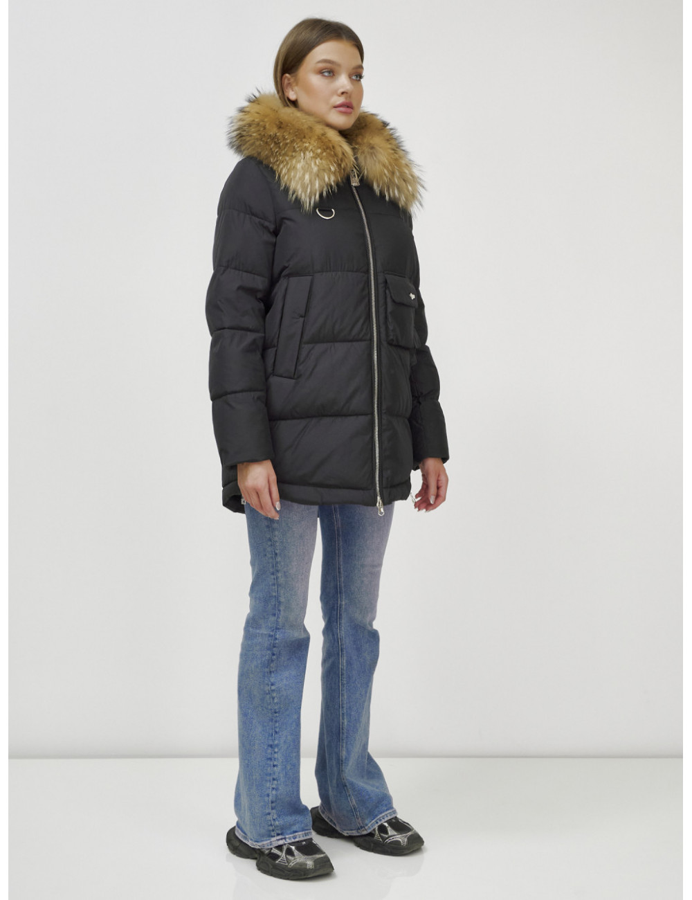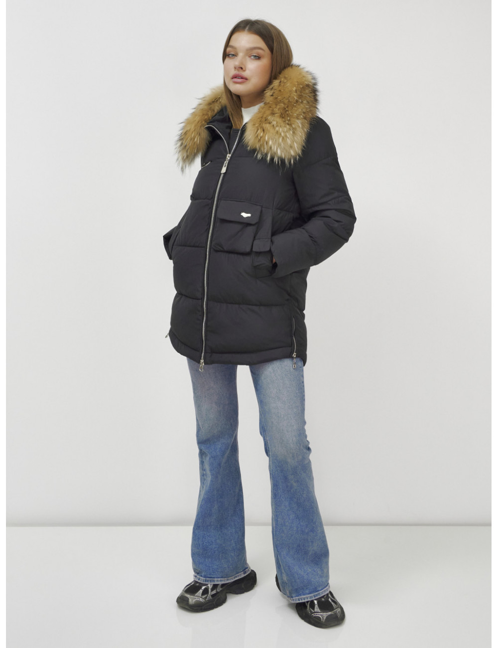 Создайте свой неповторимый зимний образ с премиальной курткой от Ketsi! Не упустите шанс проявить свой вкус и стиль в холодное время года! Доставка по Москве и Московской области Пуховик женский зимний с мехом енота премиум-класса, чёрный.
