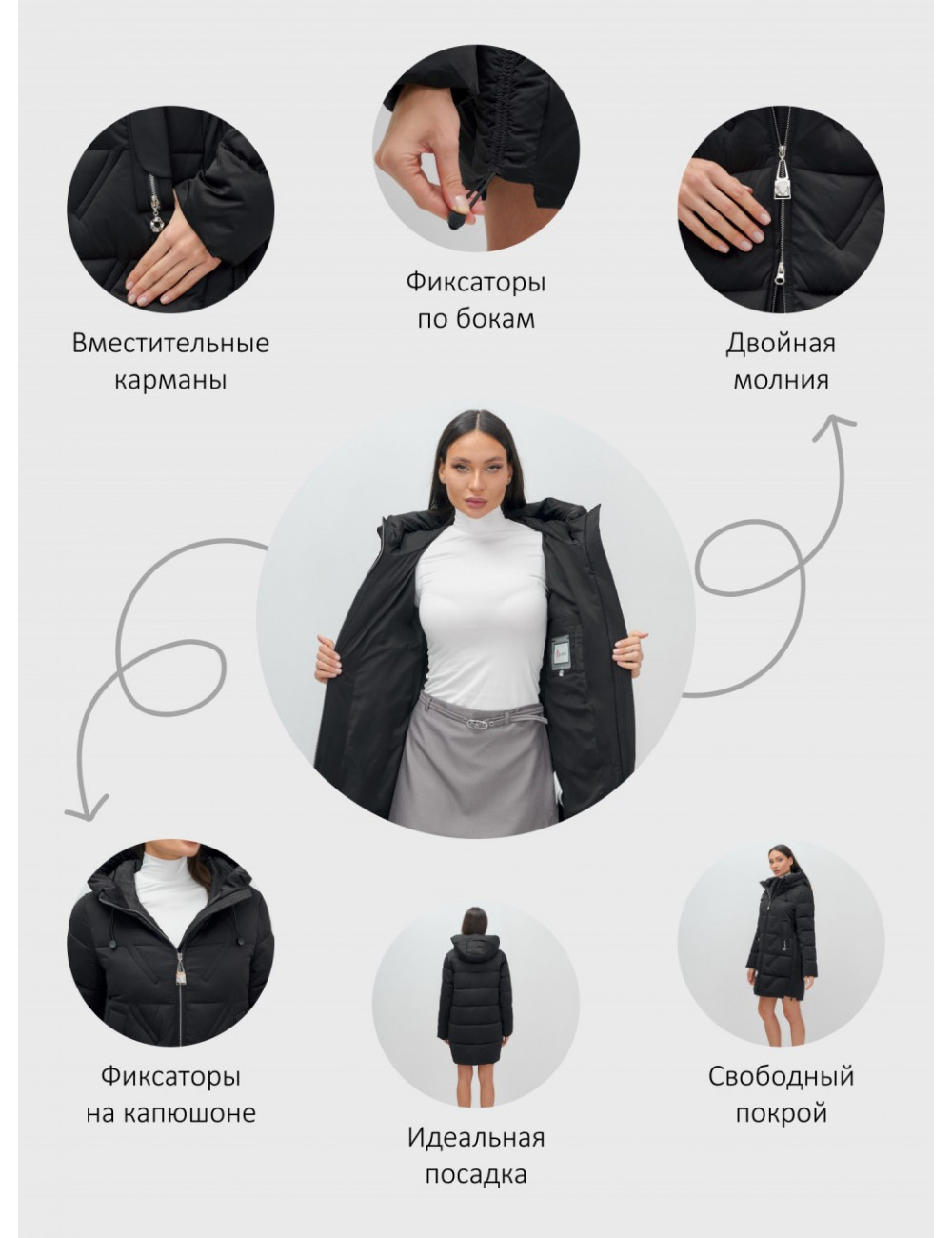 | Декоративные элементы | Капюшон, Карманы, Манжеты, Молния |