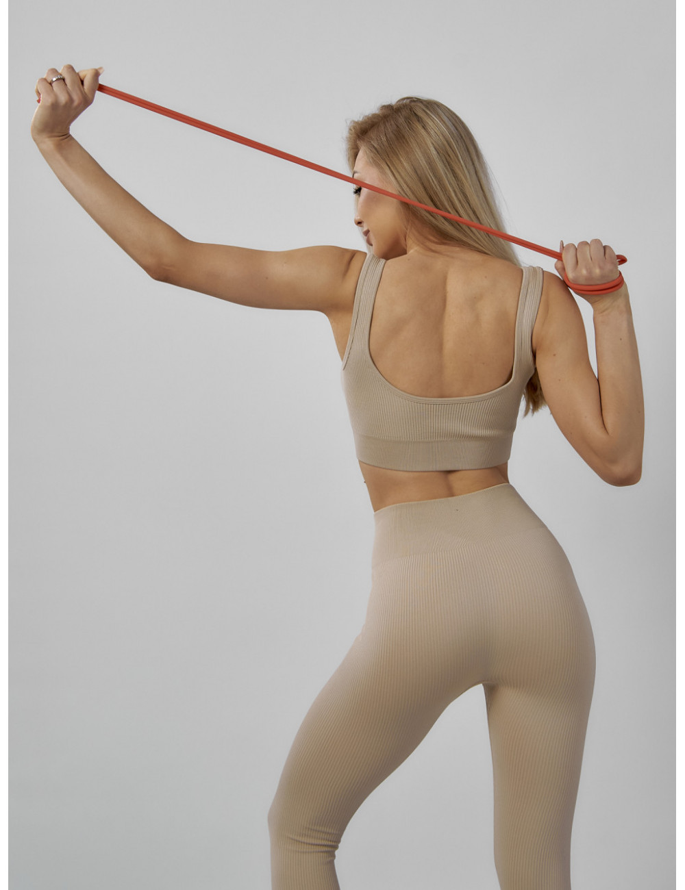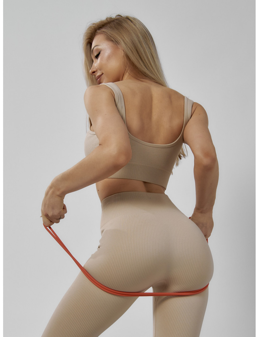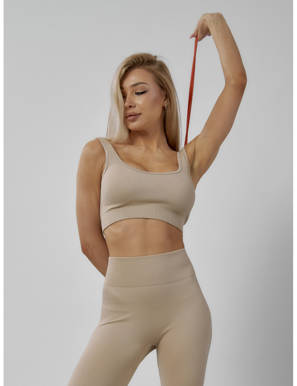 Костюм можно сочетать с различными аксессуарами, например, с фитнес-банданами, повязками на голову или спортивными сумками. Он будет отлично смотреться как с кроссовками, так и с лёгкими кедами. Доставка по Москве и Московской области Женский спортивный костюм для фитнеса бежевый