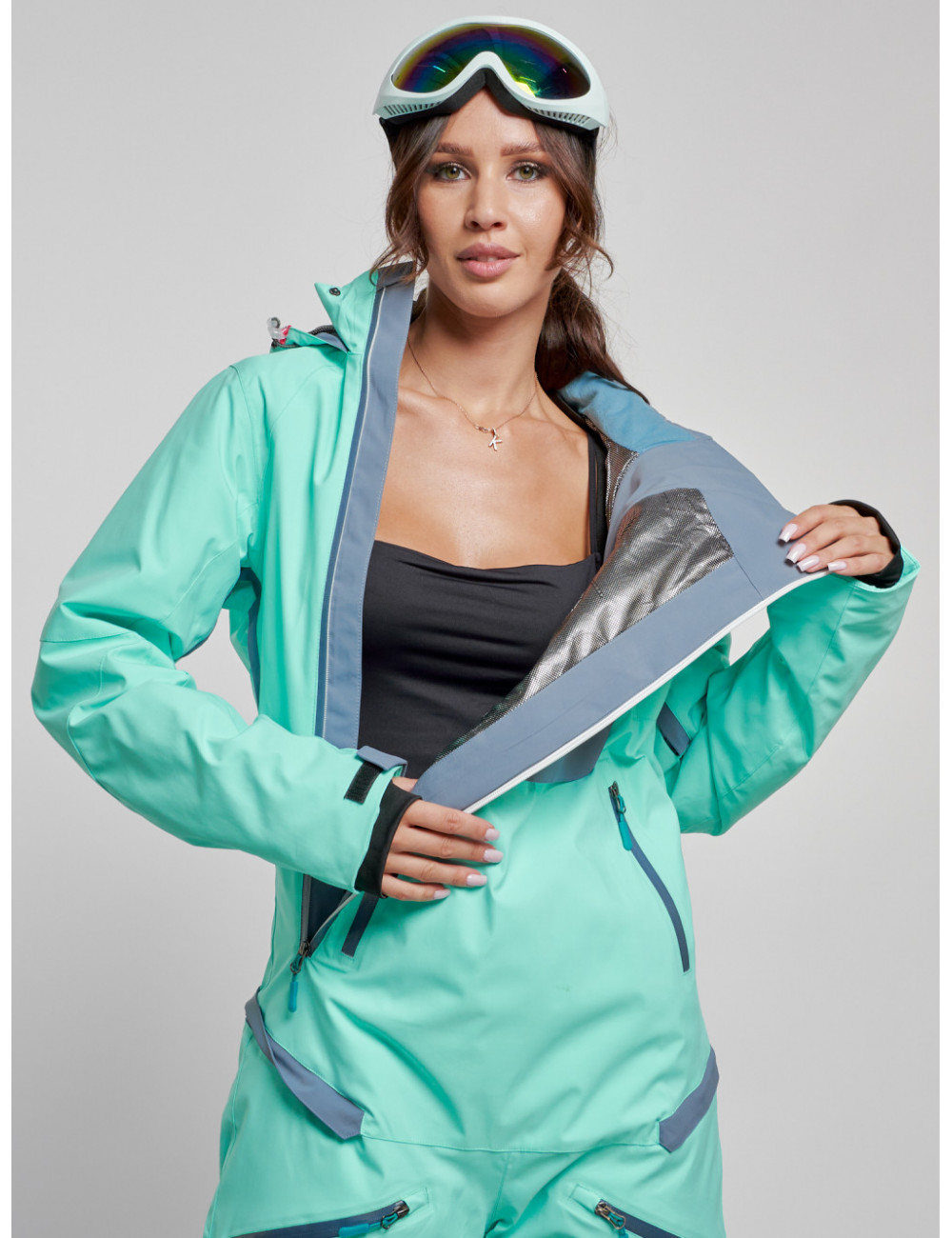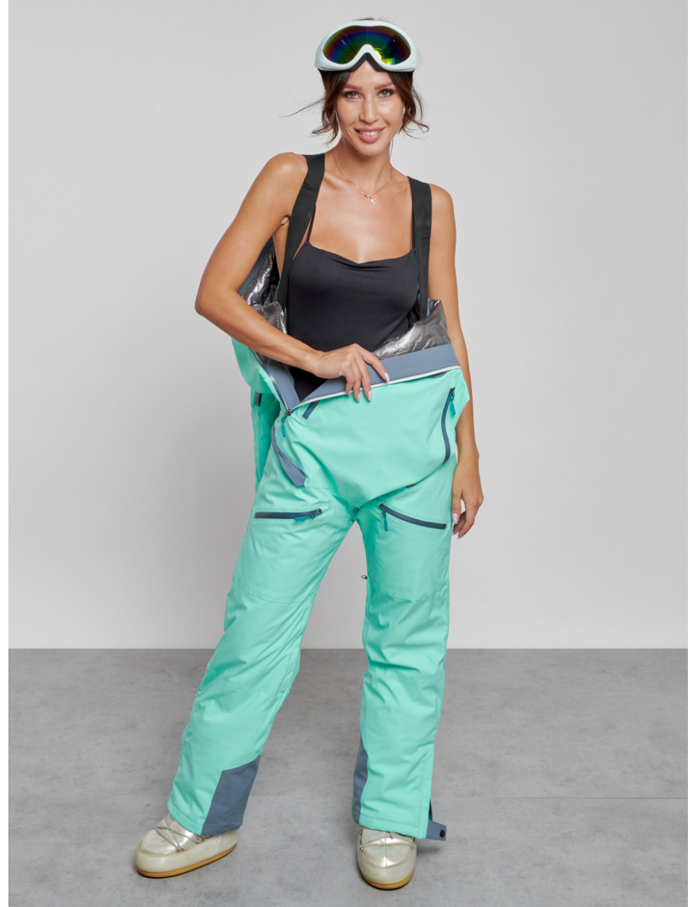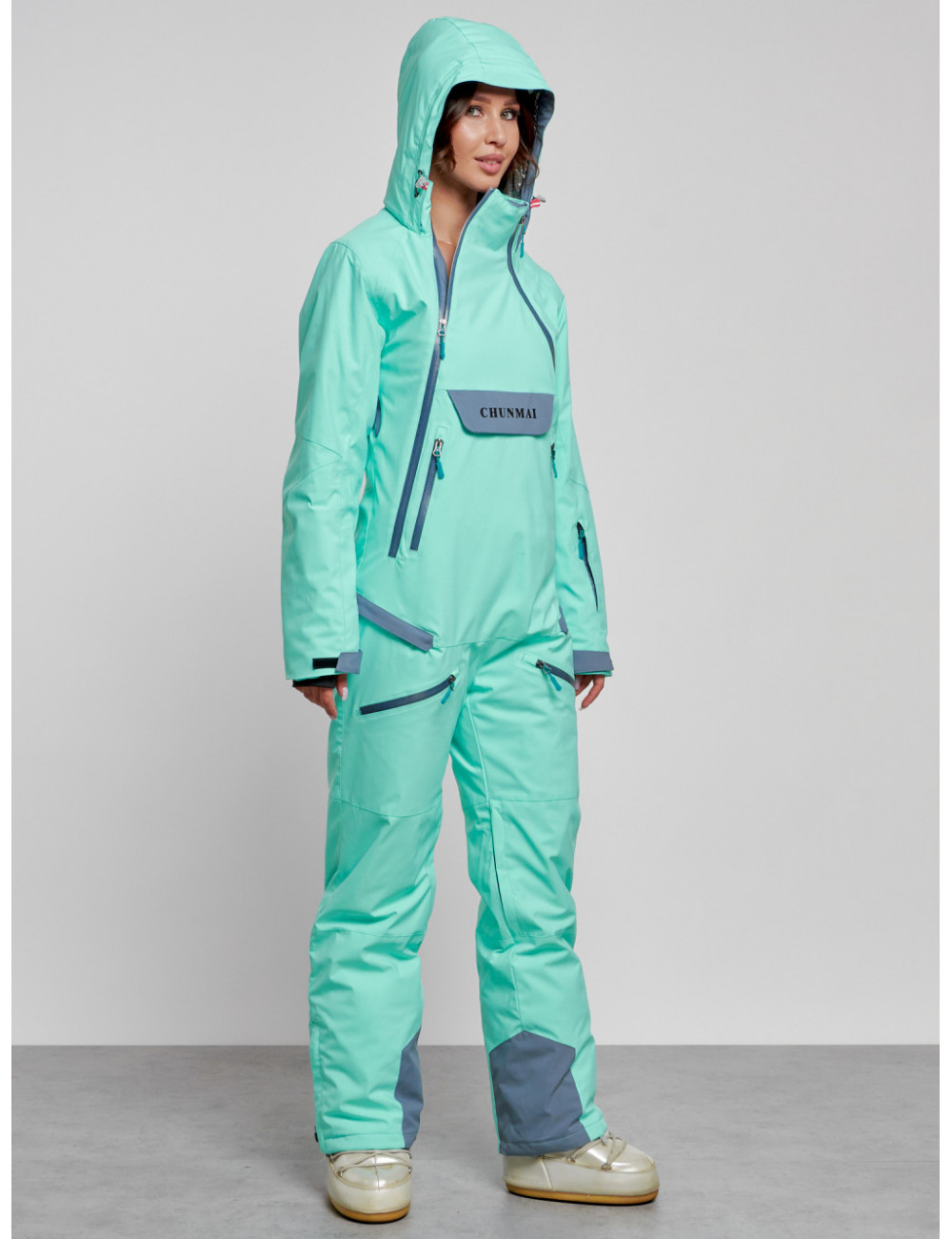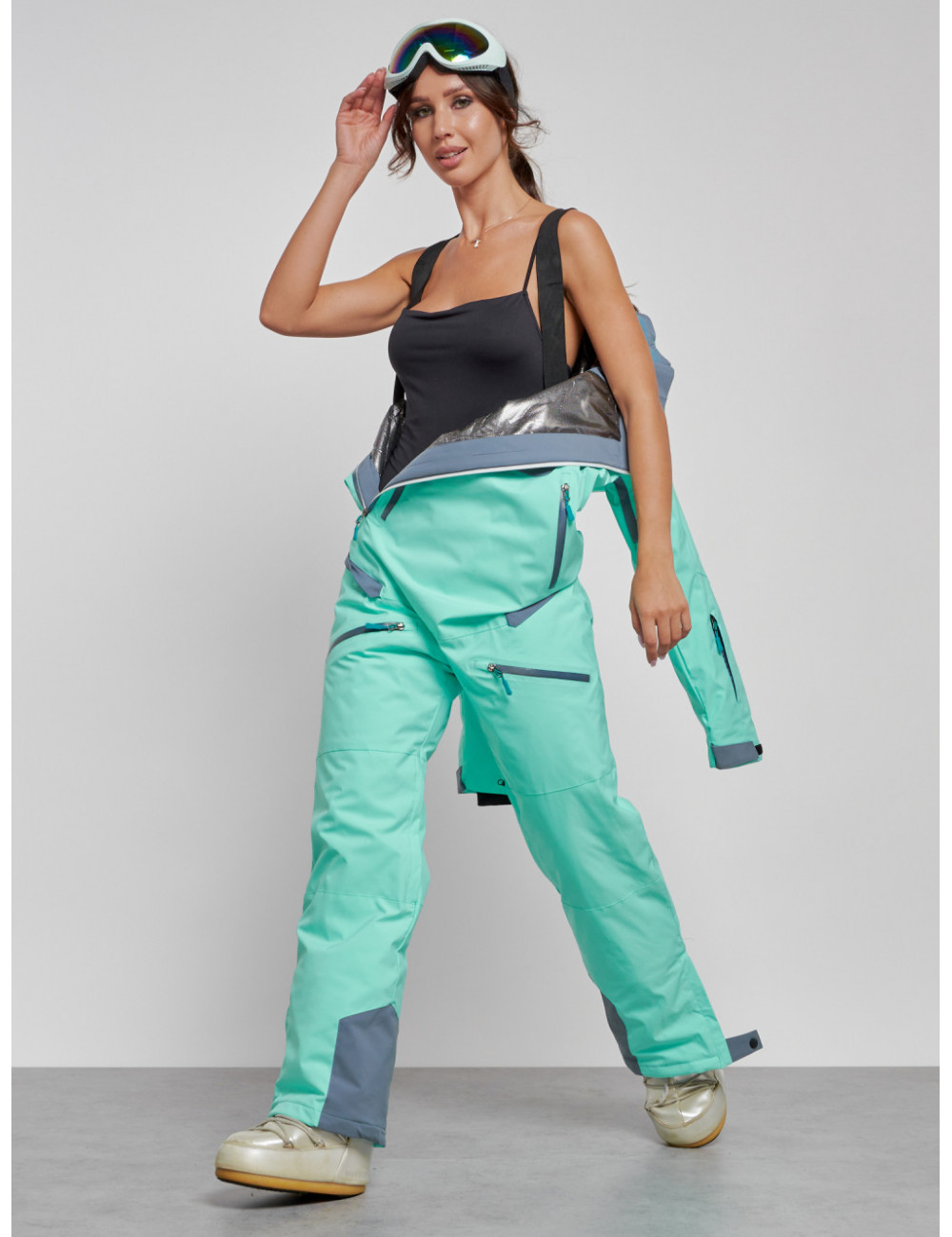 Не упустите возможность приобрести стильный и тёплый женский комбинезон для зимнего активного отдыха. Наслаждайтесь зимними развлечениями и прогулками в полной мере! Доставка по Москве и Московской области Женский горнолыжный комбинезон бирюзового цвета