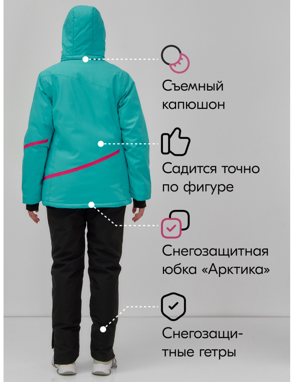 Подготовьтесь покорять горы с уверенностью и элегантностью! Ваши зимние приключения начинаются здесь. Доставка по Москве и Московской области Женский горнолыжный костюм бирюзового цвета