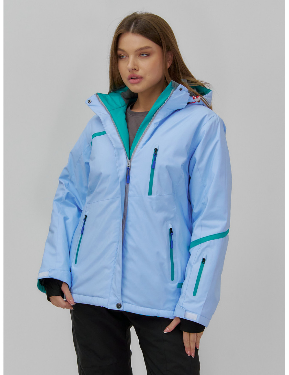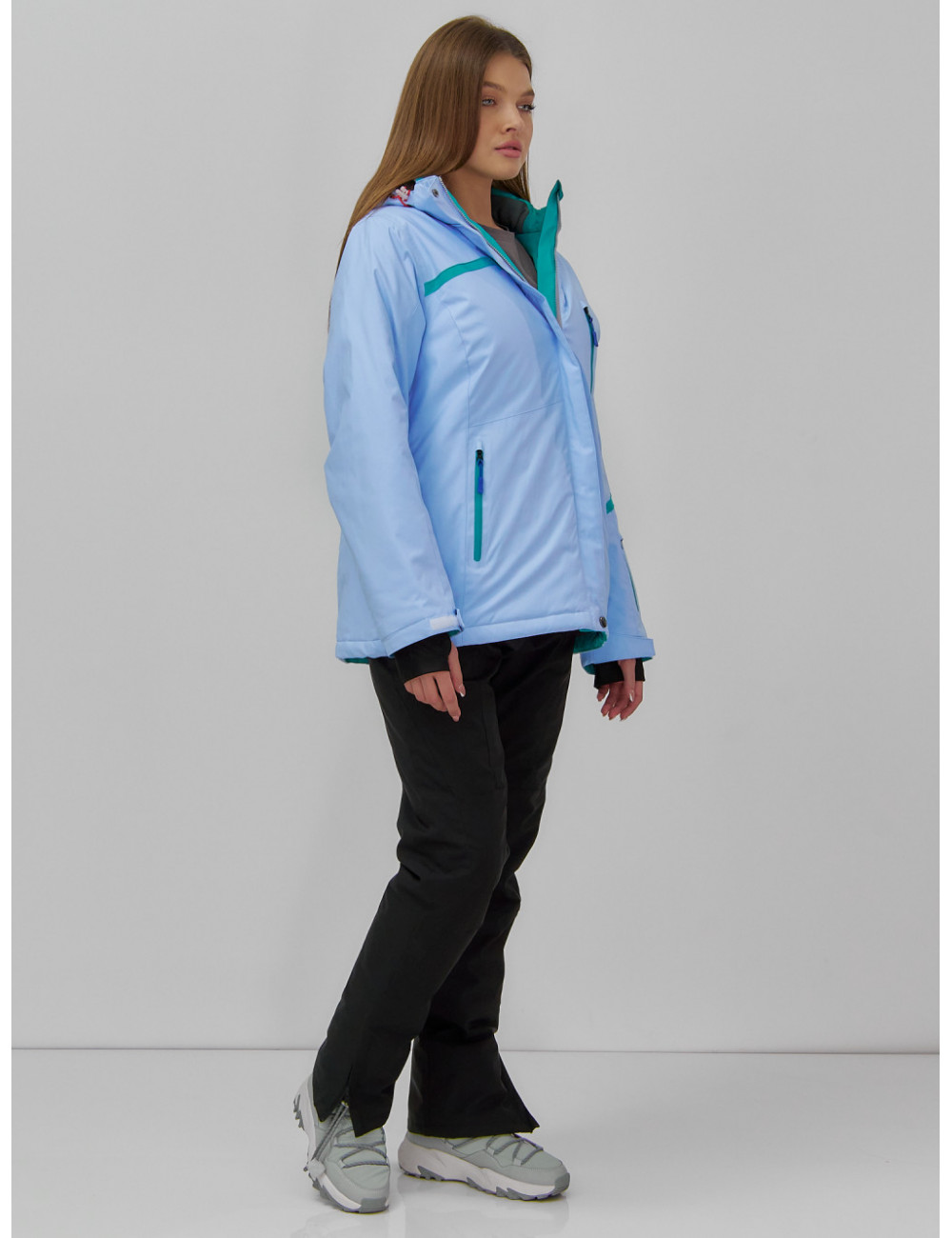 Сочетайте этот костюм с тёплыми термобельём и термоносками для максимального комфорта и защиты от холода. А стильный дизайн позволит вам не только покорять горные склоны, но и выделяться среди других любителей зимних видов спорта. Доставка по Москве и Московской области Женский горнолыжный костюм большого размера, голубой.