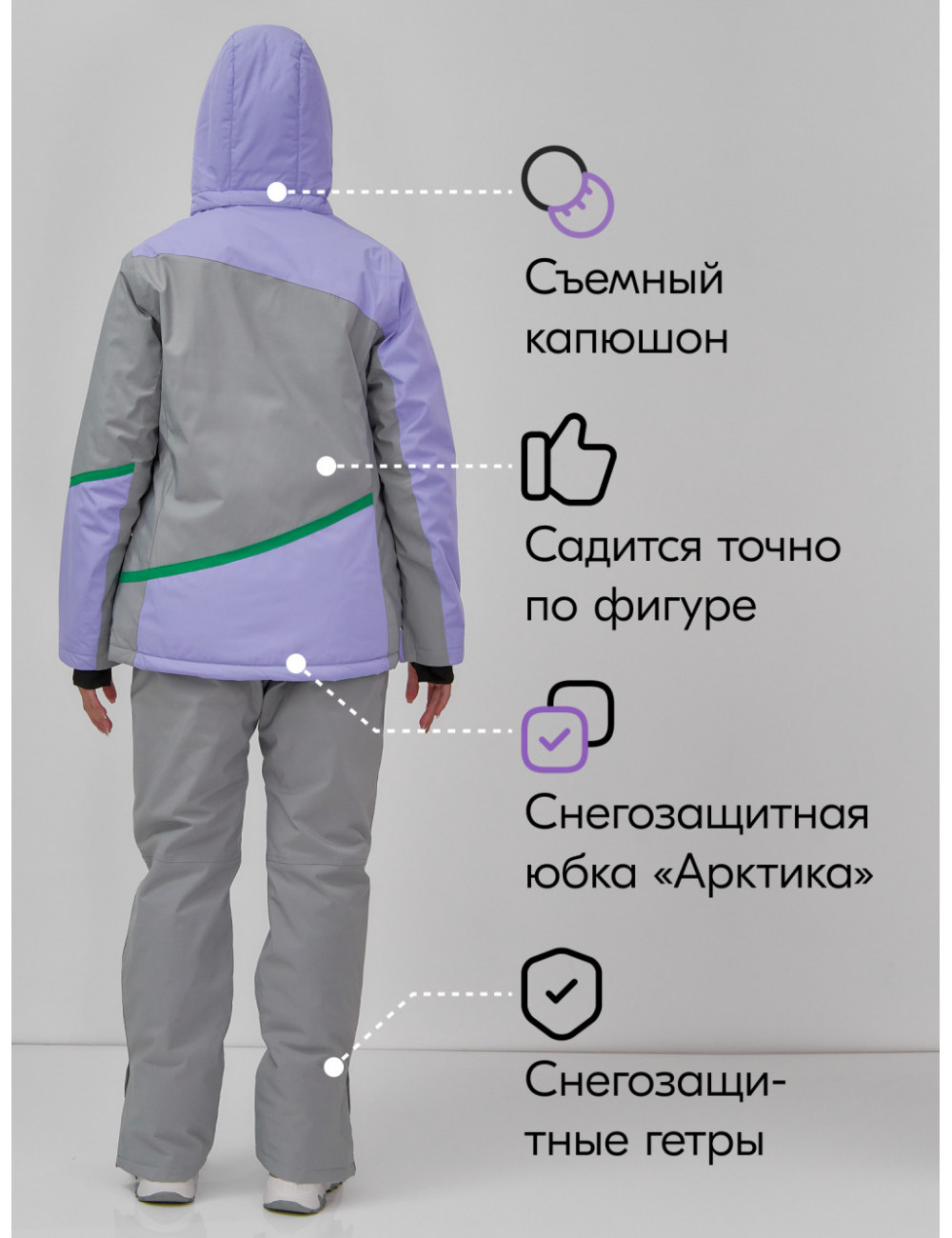 Подготовьтесь к зимним приключениям с горнолыжным костюмом от Ketsi и наслаждайтесь свободой движений и защитой от непогоды! Доставка по Москве и Московской области Женский горнолыжный костюм сиреневого цвета для зимы