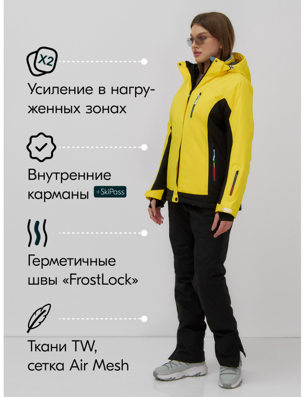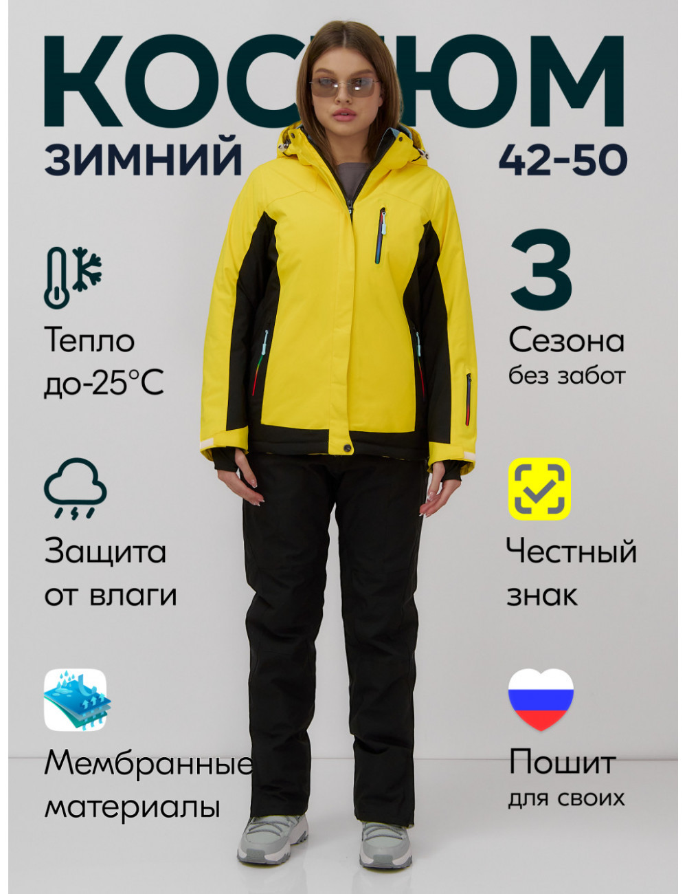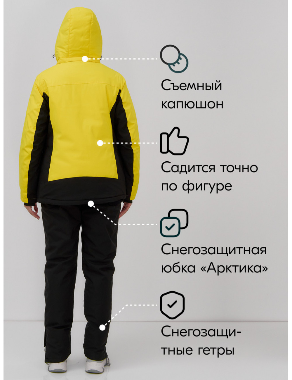 Не упустите шанс сделать эту зиму незабываемой — покоряйте горные вершины с изяществом и уверенностью в горнолыжном костюме от Ketsi! Доставка по Москве и Московской области Женский горнолыжный костюм зимний жёлтый для зимних видов спорта