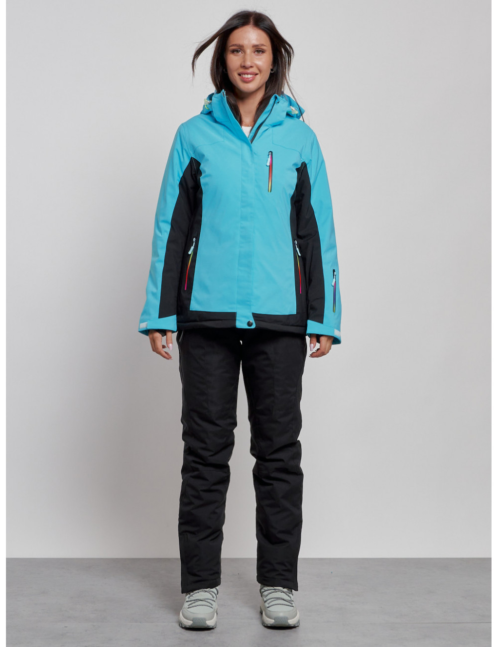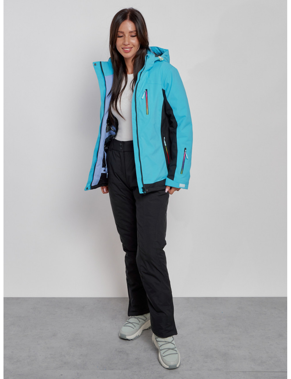 Костюм отлично сочетается с термобельём и тёплыми аксессуарами, такими как шапки, перчатки и шарфы. Это позволит создать полноценный зимний образ и чувствовать себя комфортно в любых погодных условиях. Доставка по Москве и Московской области Женский горнолыжный костюм голубой.