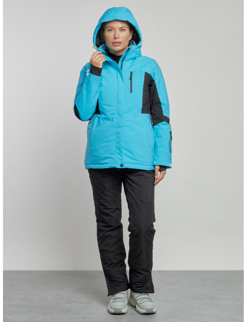 Перед тем как надеть комплект в первый раз, рекомендуется его отпарить для более опрятного вида. Доставка по Москве и Московской области Женский горнолыжный костюм голубой.