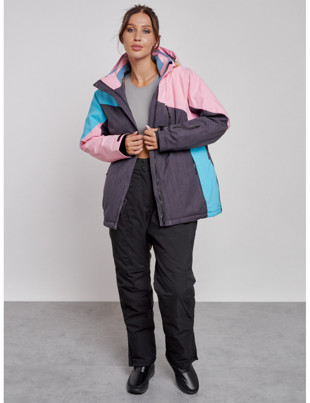 Женский горнолыжный костюм розового цвета большого размера для зимы