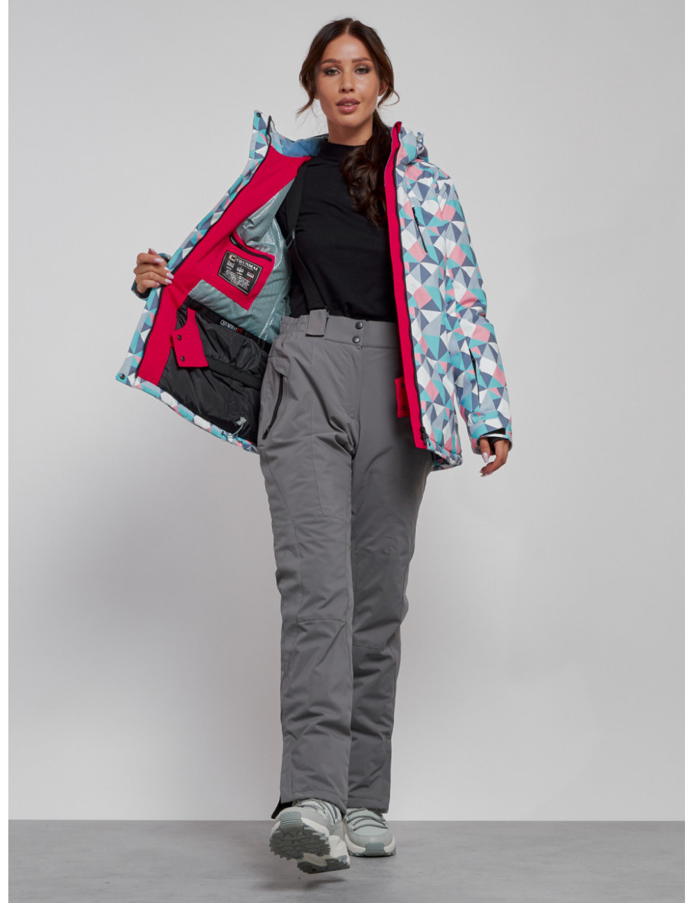 Зимний горнолыжный комплект отлично сочетается с термобельём и тёплыми аксессуарами, такими как шапки, перчатки и шарфы. Это создаст дополнительный комфорт и защитит от холода. Доставка по Москве и Московской области Женский горнолыжный костюм серый