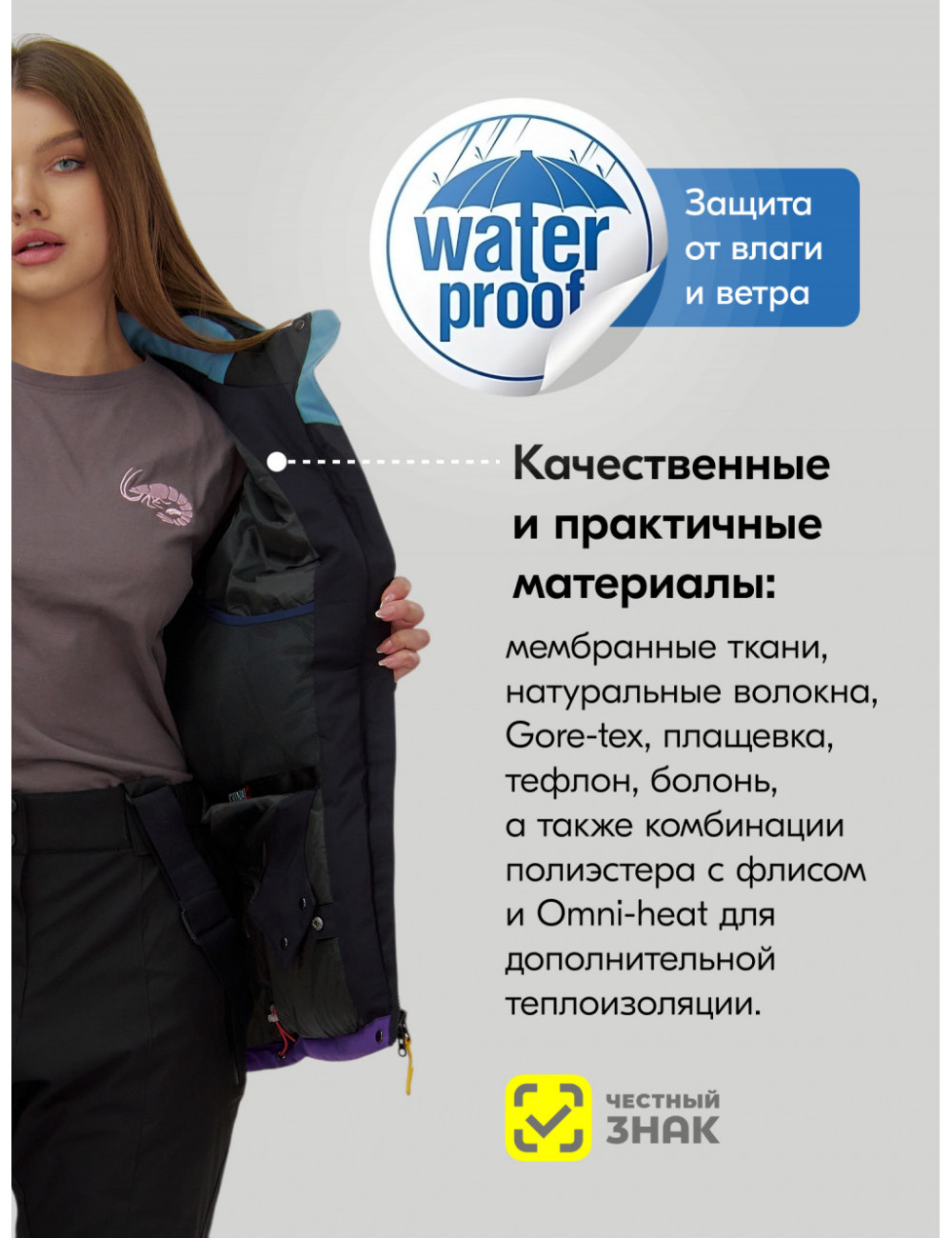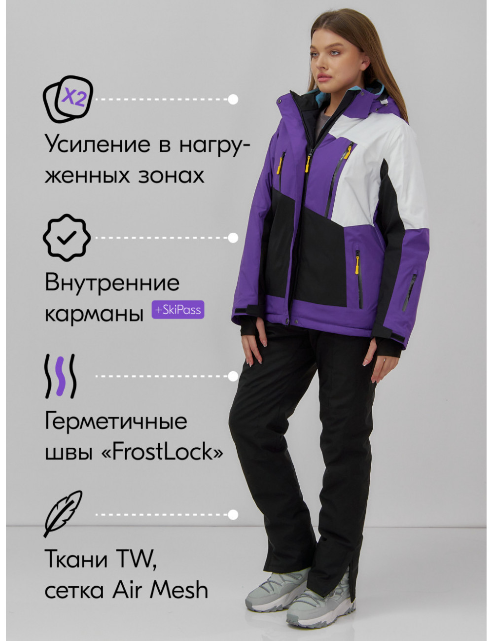 Этот горнолыжный костюм станет отличным дополнением к вашему зимнему гардеробу. Вы можете сочетать его с тёплыми термобельём, флисовыми свитерами и шапками для максимального комфорта и защиты от холода. Не упустите возможность выглядеть стильно и чувствовать себя уверенно на зимних склонах! Доставка по Москве и Московской области Женский горнолыжный костюм, тёмно-фиолетовый.