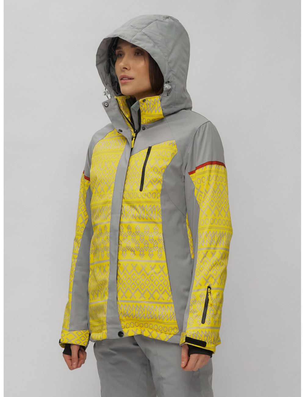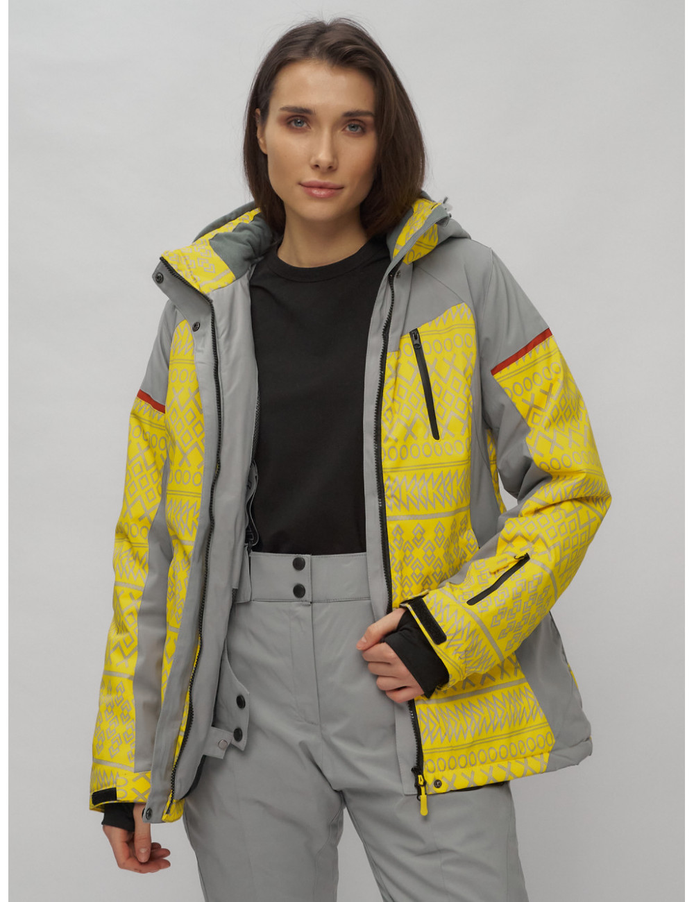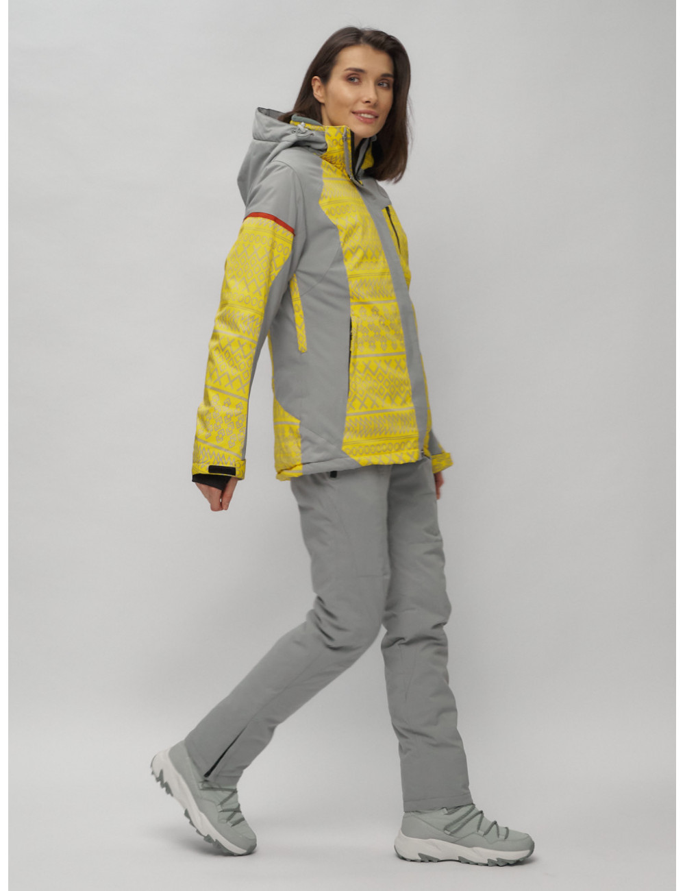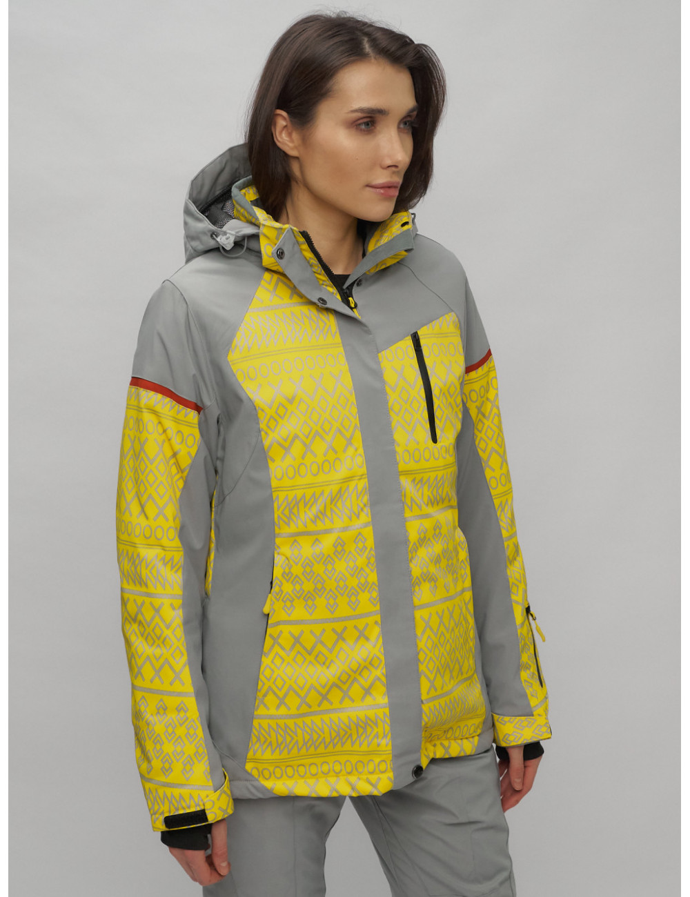 Верхняя одежда для зимних активностей: горнолыжный комплект включает в себя удобные брюки с бретелями и стильную куртку с геометрическим принтом. Идеален для любителей зимних видов спорта и активного отдыха.
