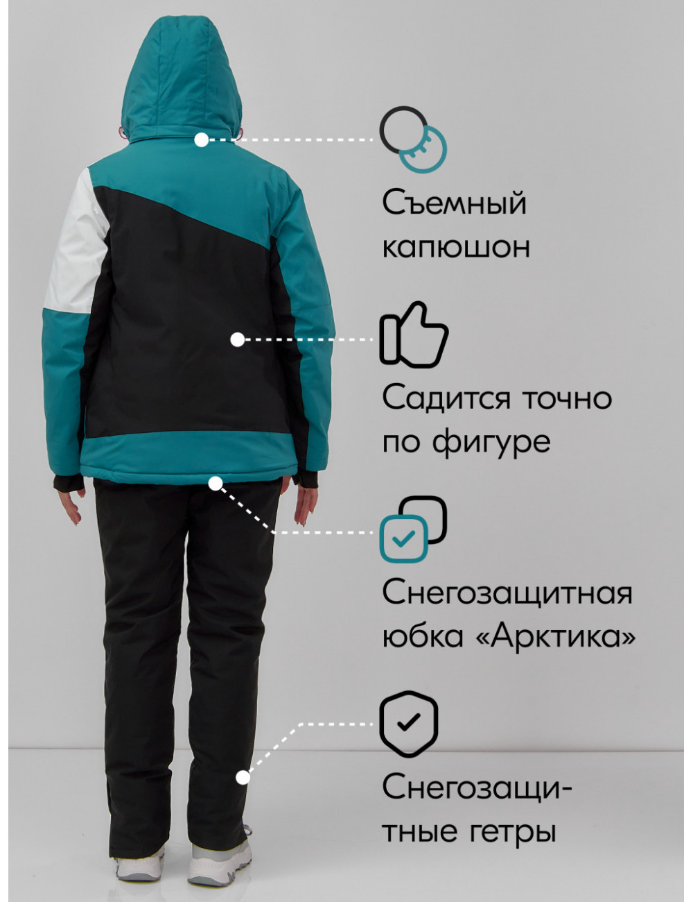 Костюм можно сочетать с термобельём и флисовыми куртками для дополнительного утепления в холодную погоду. Также он хорошо смотрится с горнолыжными ботинками и аксессуарами, такими как шапки и перчатки. Доставка по Москве и Московской области Женский горнолыжный костюм зелёный.