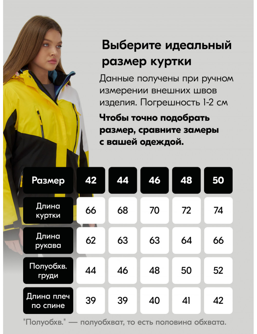 Технические характеристики Женский горнолыжный костюм зимний жёлтый