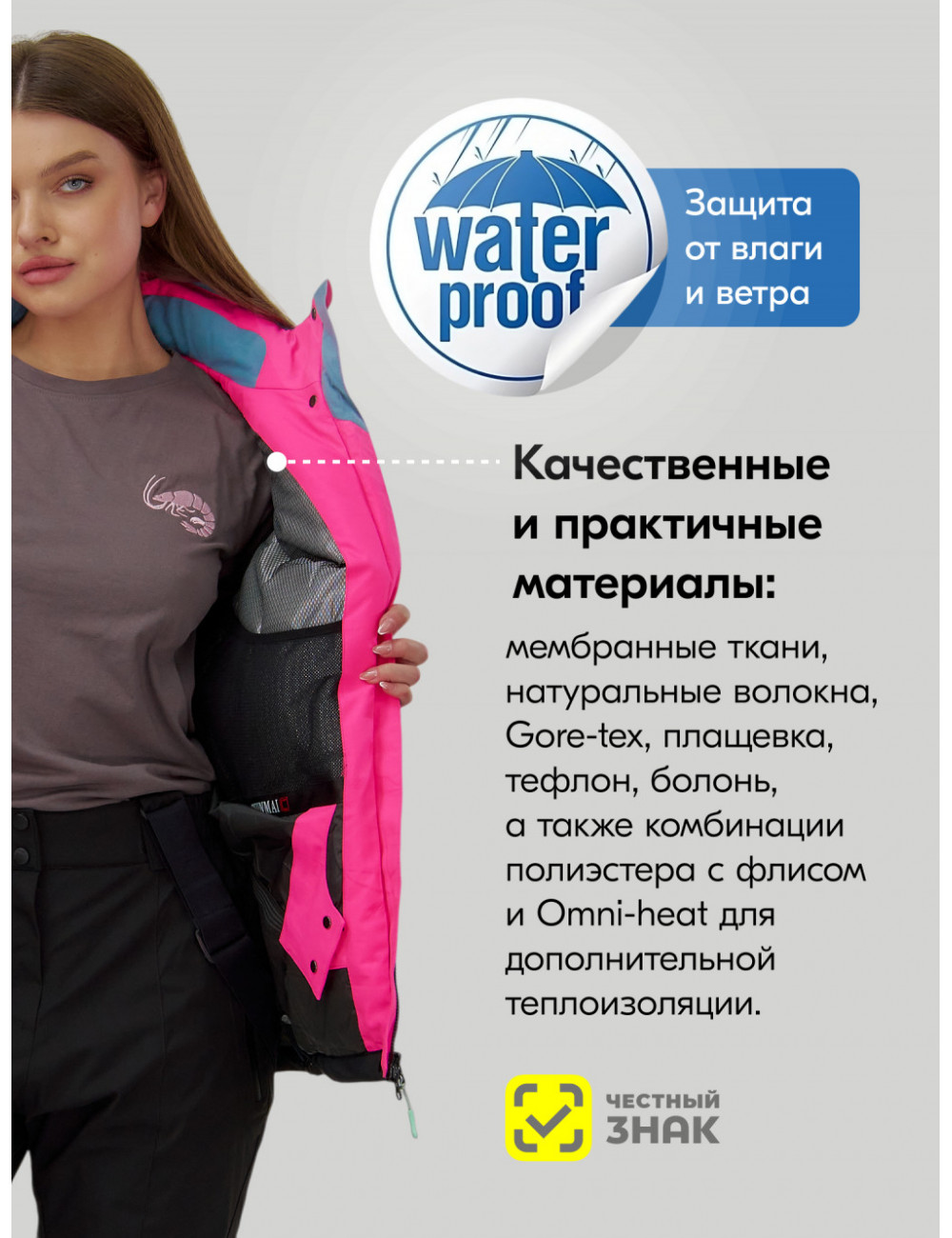 - Внешняя мембранная ткань для защиты от влаги.