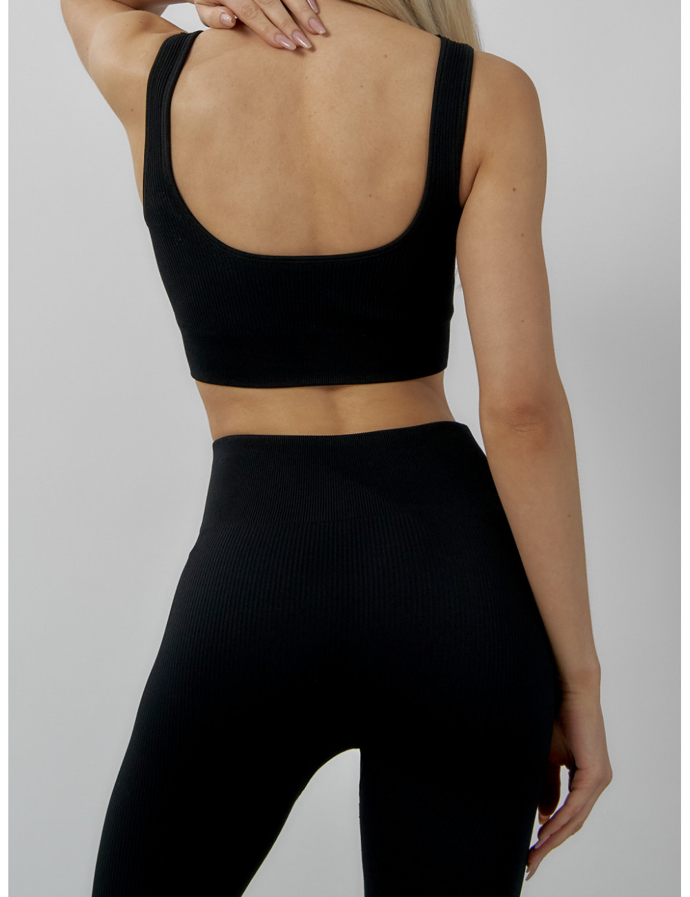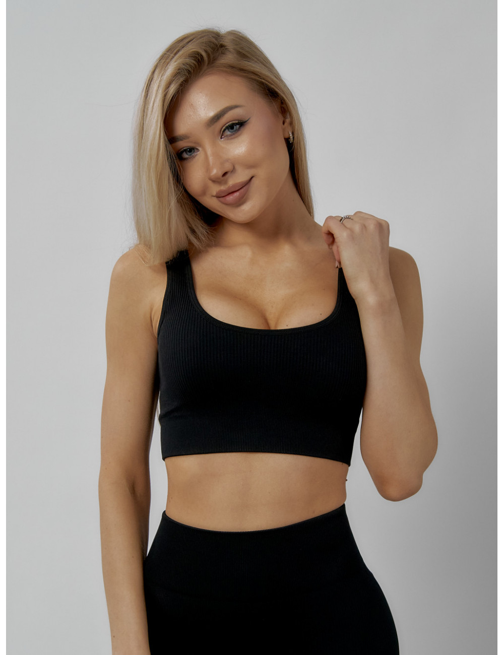 - Фиксирующий эффект. Широкая резинка на высокой талии надёжно фиксирует топ на фигуре, предотвращая его соскальзывание.