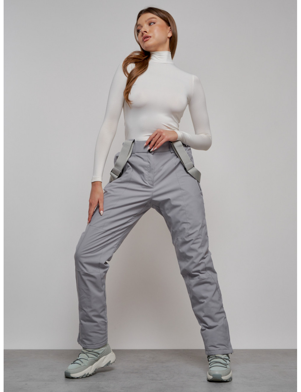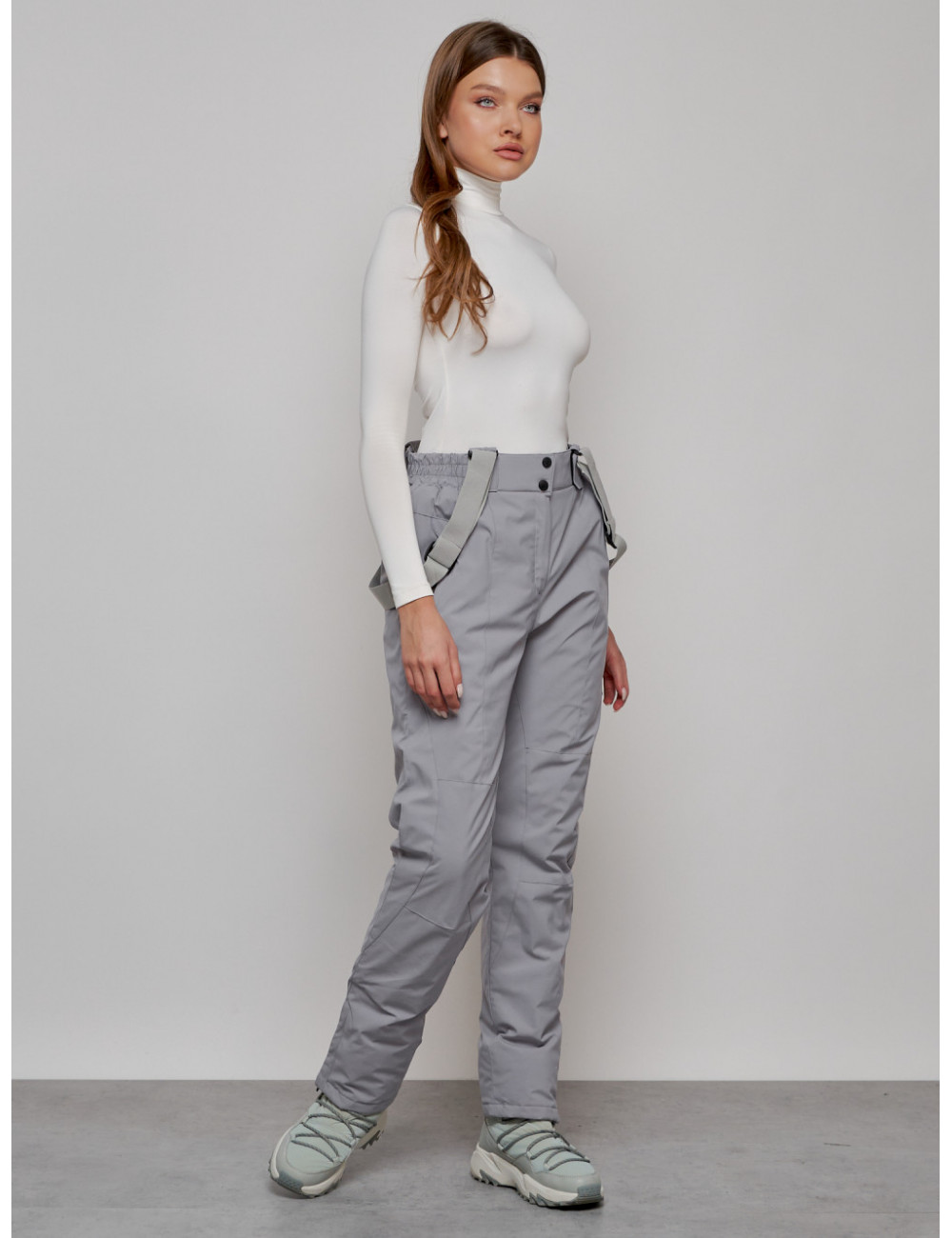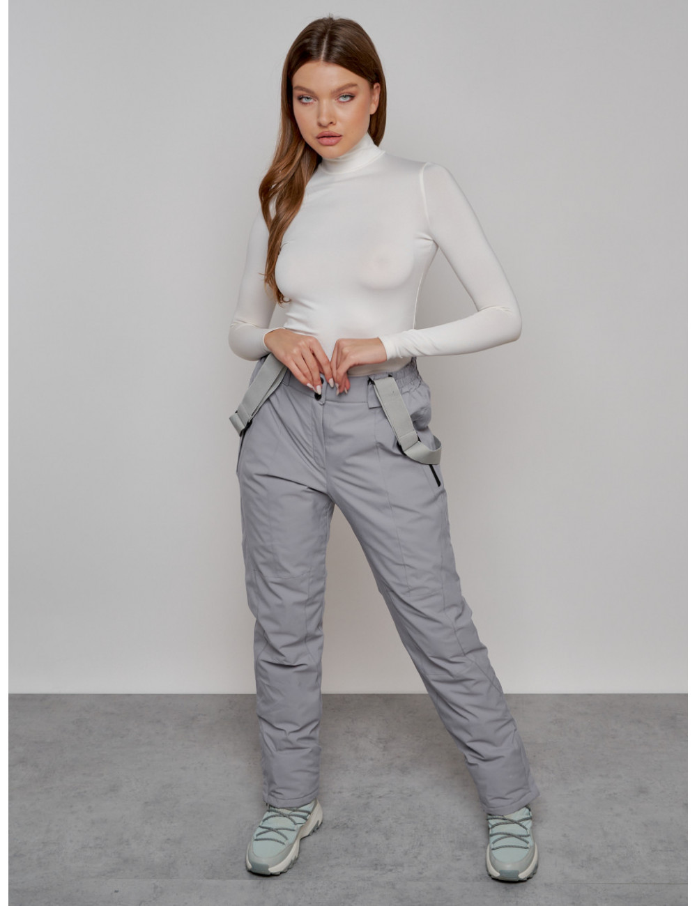 Перед тем как надеть брюки в первый раз, рекомендуется их отпарить для более опрятного вида. Мы желаем вам хорошего настроения и крепкого здоровья! Доставка по Москве и Московской области Зимний утеплённый горнолыжный полукомбинезон для женщин светло-серого цвета, брюки для зимних видов спорта.