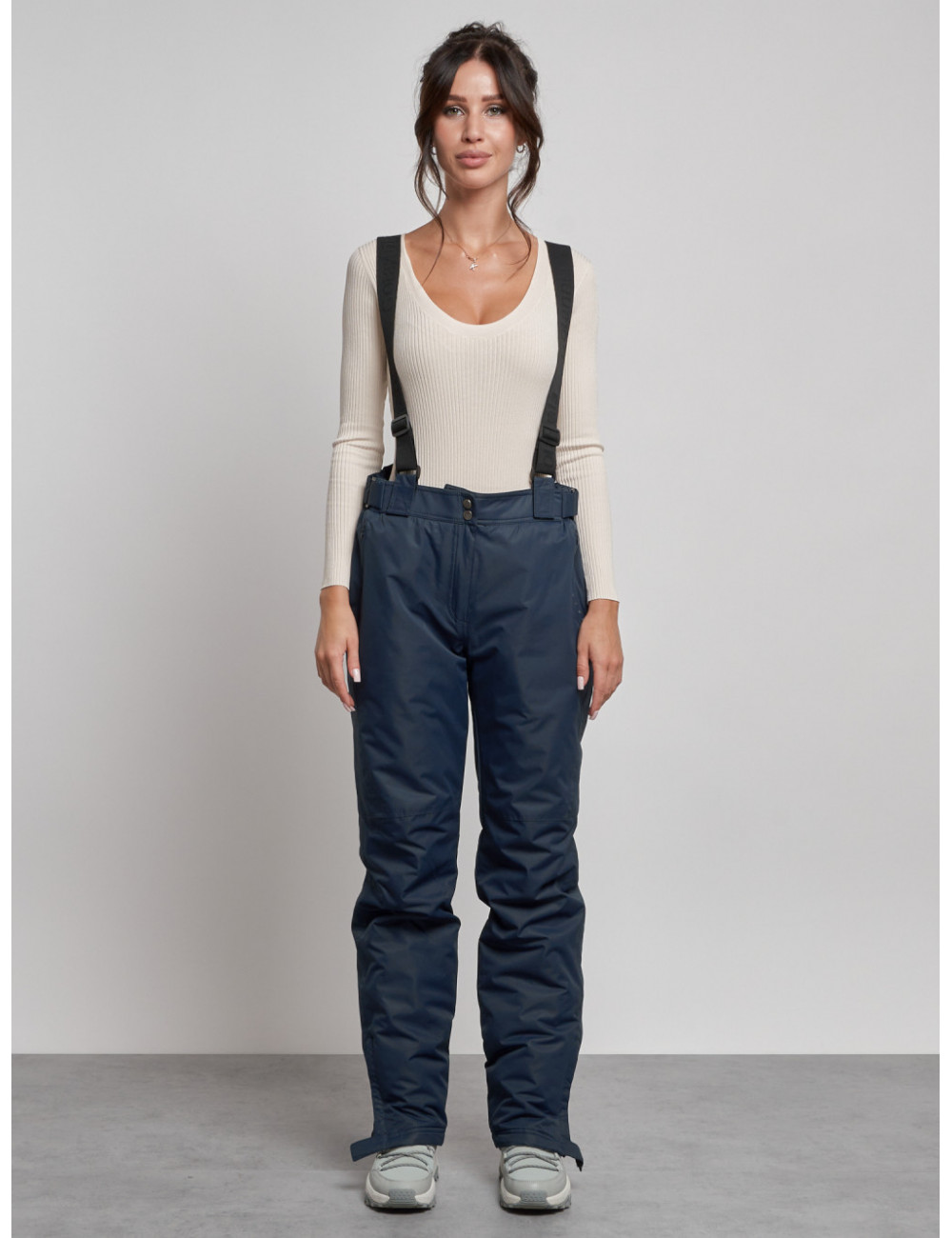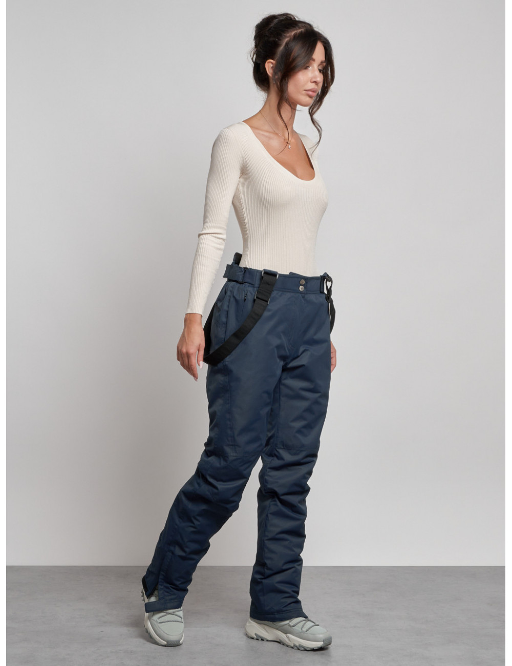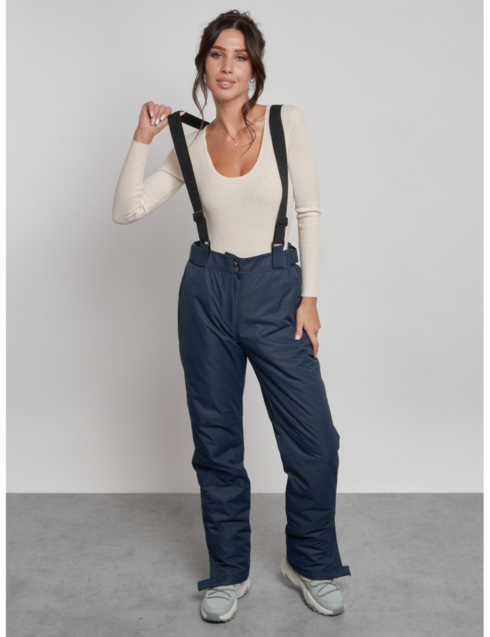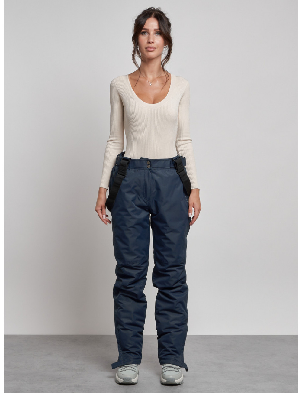 В нашем полукомбинезоне вы будете чувствовать комфорт и тепло при любых погодных условиях. Пусть зима радует вас яркими впечатлениями и комфортом в нашей тёплой и качественной одежде! Доставка по Москве и Московской области Зимний утеплённый горнолыжный полукомбинезон для женщин темно-синего цвета, брюки.