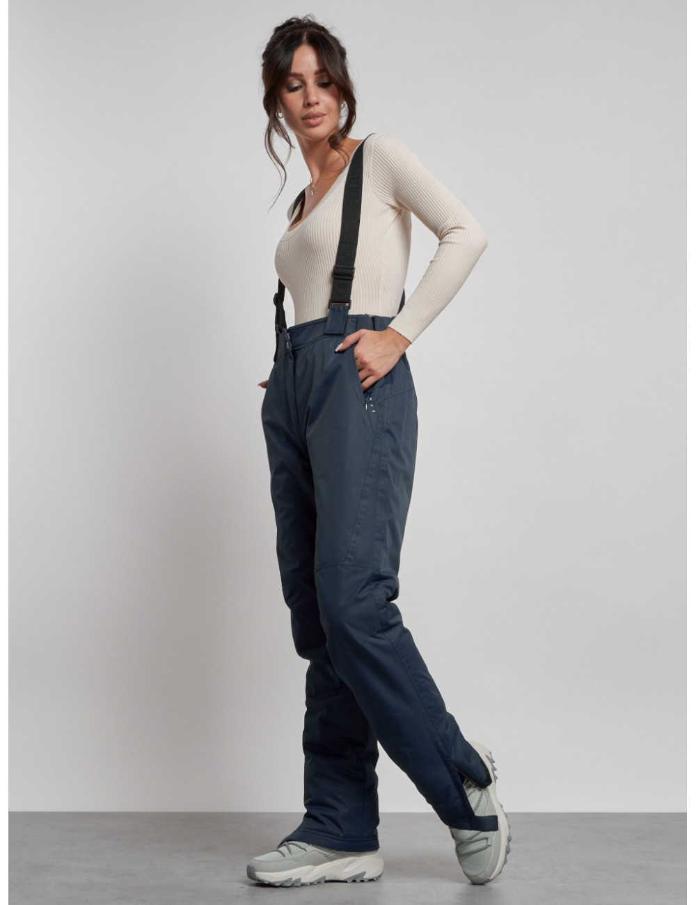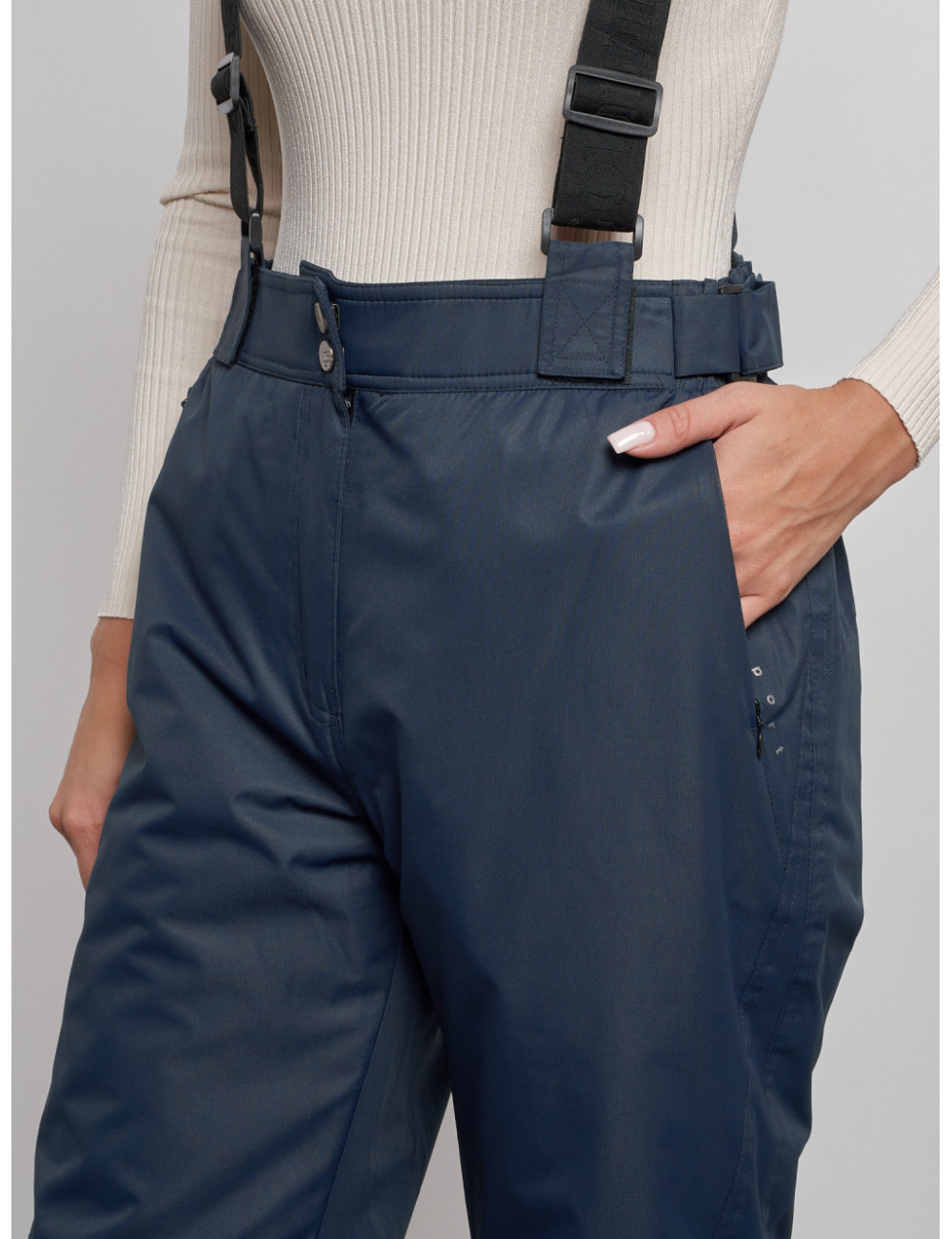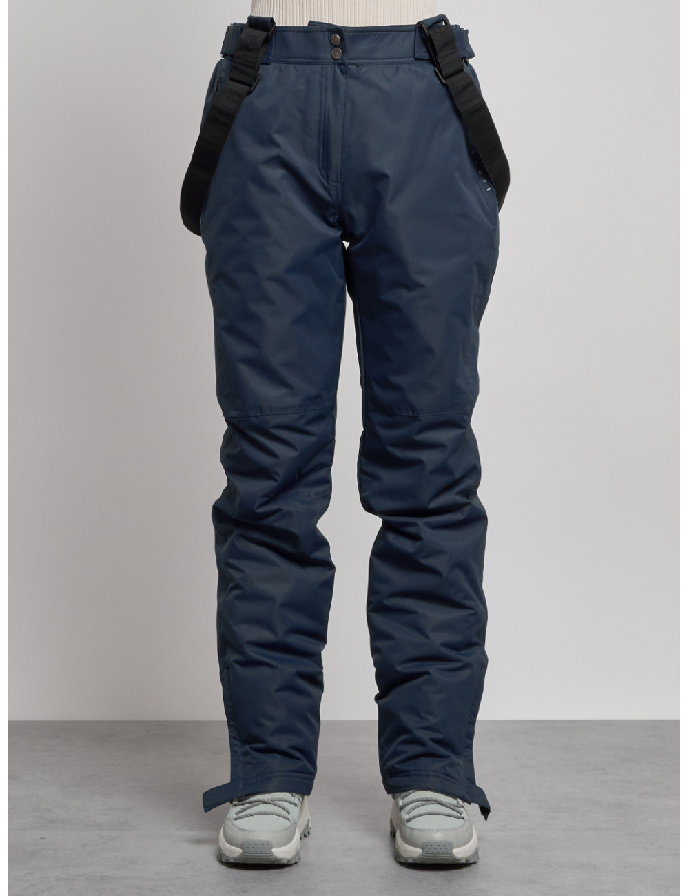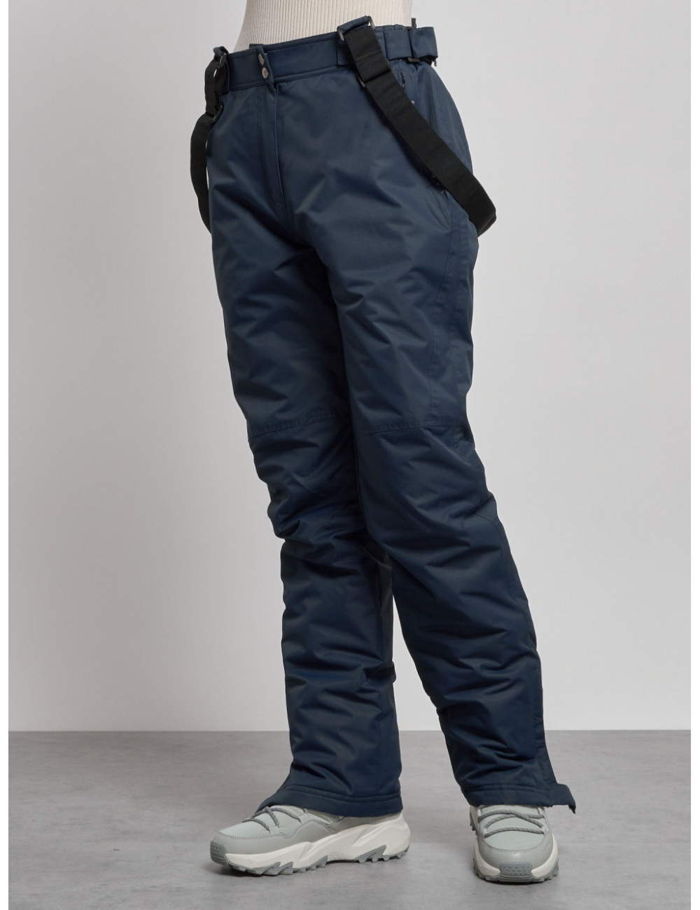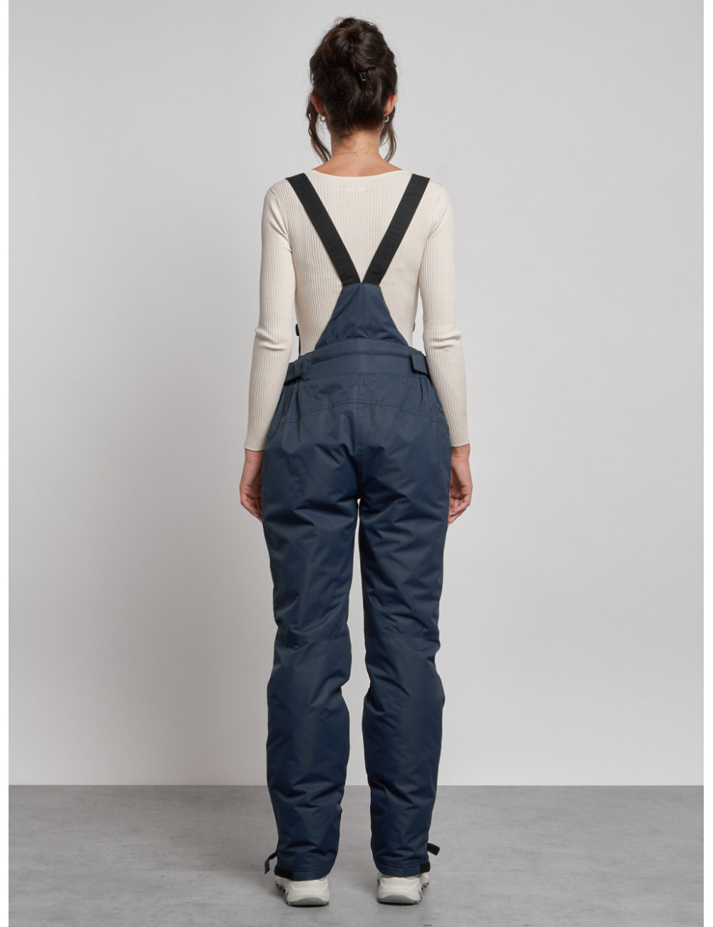 В нашем полукомбинезоне вы будете чувствовать комфорт и тепло при любых погодных условиях. Пусть зима радует вас яркими впечатлениями и комфортом в нашей тёплой и качественной одежде! Доставка по Москве и Московской области Зимний утеплённый горнолыжный полукомбинезон для женщин темно-синего цвета, брюки.